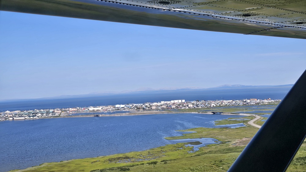 Backing up to our real reason for flying up to Kotzebue in the first place…Golden Eagle Outfitters (GEO) was our first stop after Alaska Airlines “dropped us off” in town at 10:30AM. Golden Eagle is a short walk from the main terminal. We were supposed to go up in a bush plane for 4 hours, to sight see and land at Kobuk and Gates of the Arctic National Parks, but since the flights were socked in (fog) the day before, and earlier in the morning of the day we landed, they were way behind. Our group’s flight was canceled for today. We will contact them in the morning, fingers crossed, for a flight tomorrow.