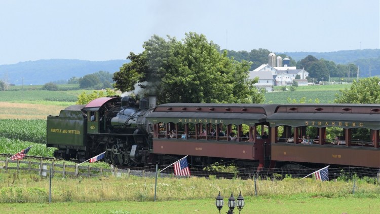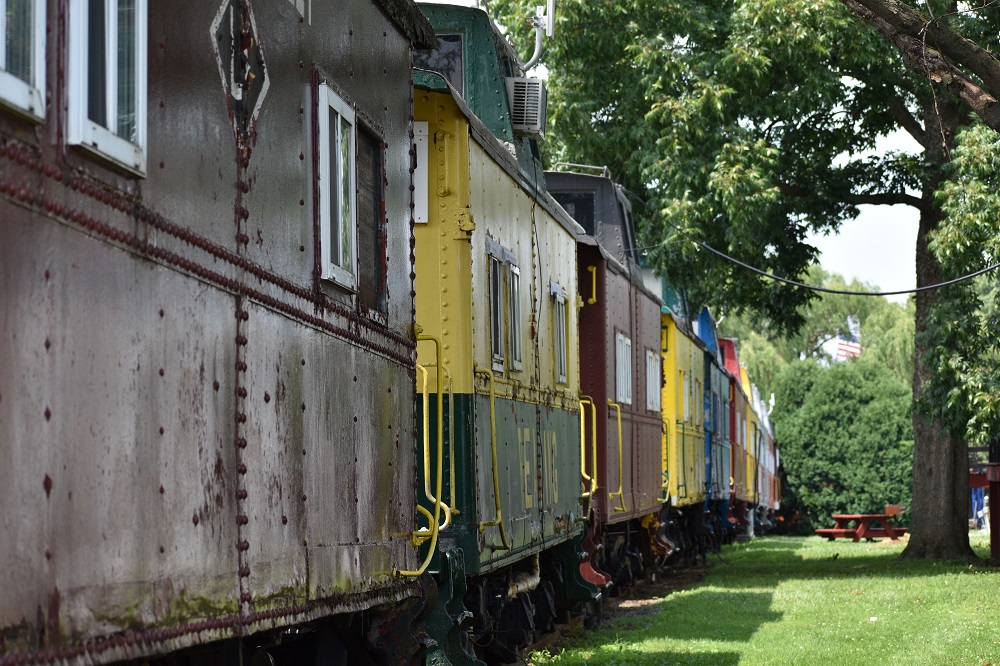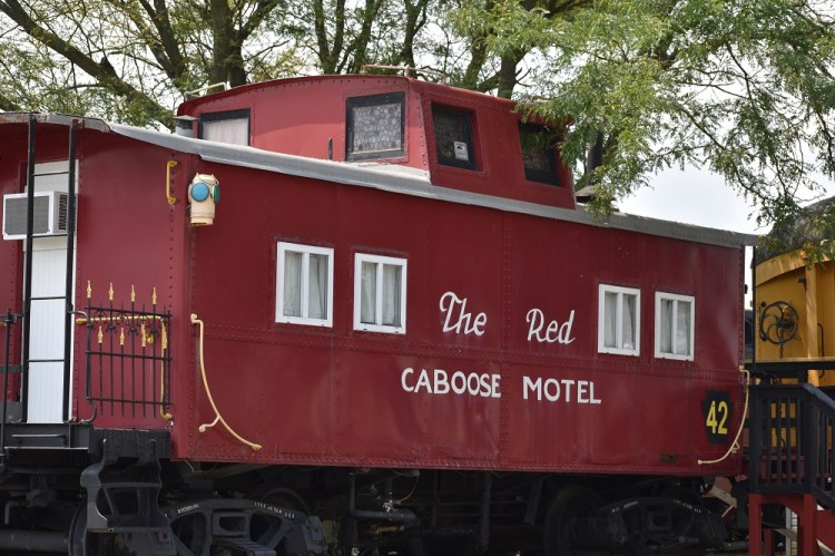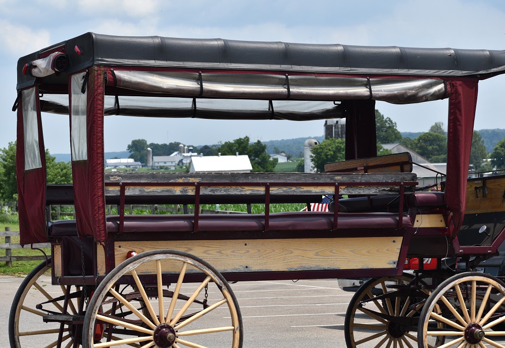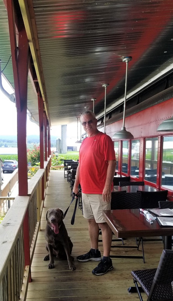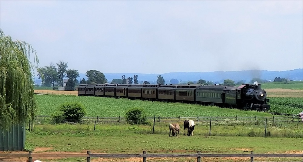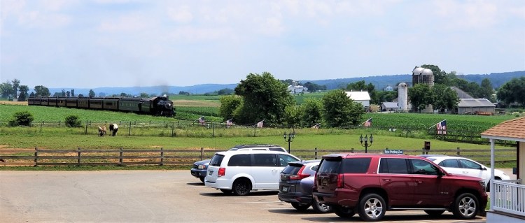 Our 1st stop was at The Red Caboose Motel. A private owner has 38 railroad cabooses turned into unique motel rooms. It is the largest private collection of railroad cabooses in the world. We had a couple of burgers and fries at Casey Jones Restaurant on the property. They have Amish buggy rides available but the highlight of this property, for me, was a steam locomotive passenger train chugging along on the tracks 50 yards from our lunch table! They were the only restaurant we could find that had outdoor seating and accepted dogs. I wanted to experience an Amish Smorgasbord (buffet) but we called several and they were not dog friendly.