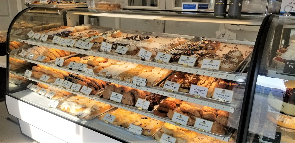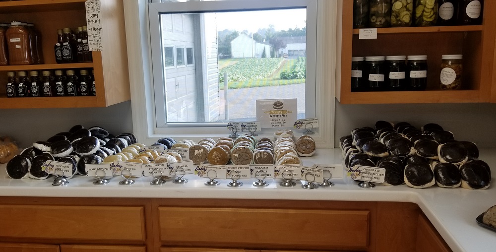 We arrived at the Amish owned and run Sunnyside Bakery in East Earl and were greeted by Dana, a sweet black lab owned by Sunnyside’s owners. Rangeley was barking at her at first but Gary was patient and let the two dogs meet one another. The bakery is in a separate building of a working Amish farm. We saw it online and agreed with the high reviews! (I think these businesses hire English or Mennonite friends to set up online sites for them). We bought an oatmeal Whoopie Pie and blueberry fritter for an on the road snack; sticky buns and a loaf of apple cake to share with Glenn and Donna in Maine and a cream filled donut with loads of shredded coconut on top for breakfast. Did I mention we were going for a hike today!?