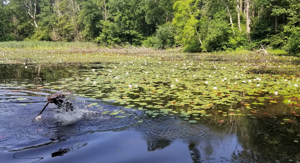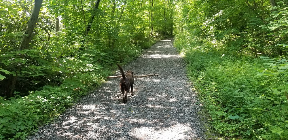 We arrived in Delaware Water Gap, PA where the Appalachian Trail passes through. Gary stopped in this town while thru-hiking the AT in 2014 and again this past June while section hiking the AT. We took Rangeley on a section of the AT where he enjoyed a Lilly pad covered pond and a stream to exercise and cool off in. The trail is a lovely wooded, typical Appalachian Trail hike as Gary informed me, with dirt, mud and many rocks on the trail. It’s always fun retracing where Gary has been on his adventures without me. He always has fun and wonderfully memorable stories to tell.