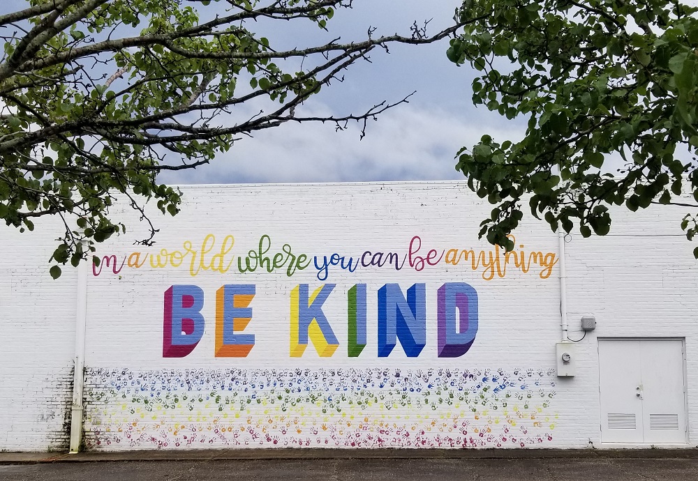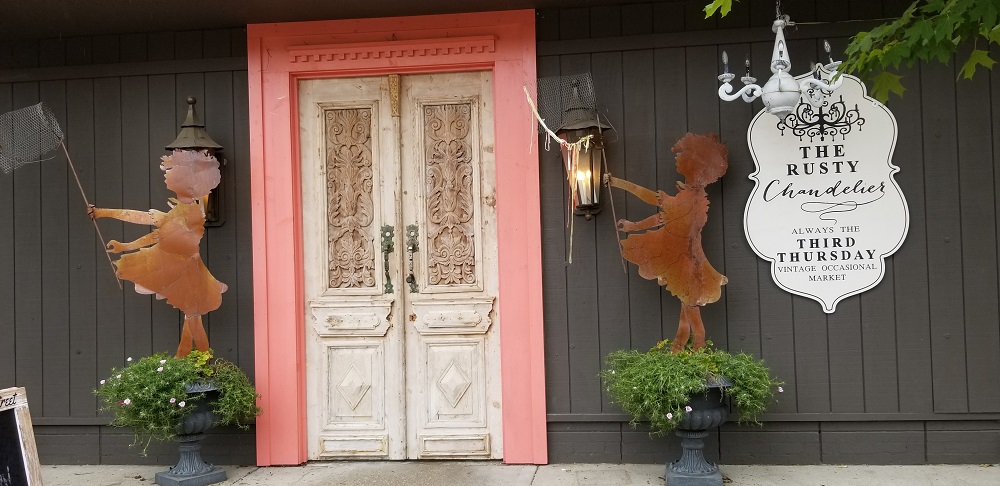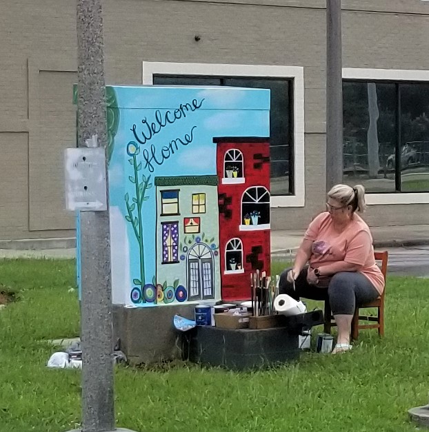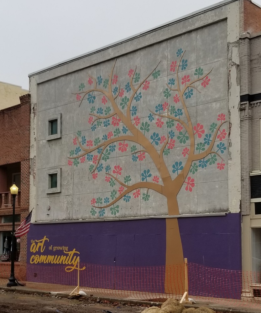 The Welcome to Laurel sign painted on another business’ exterior wall was just down the street. I had printed a map of the local art and popular locations to visit in this just under 20,000 population town. You can also get maps inside most of the shops. We traded taking pictures of other visitors and they took our picture for us as well.