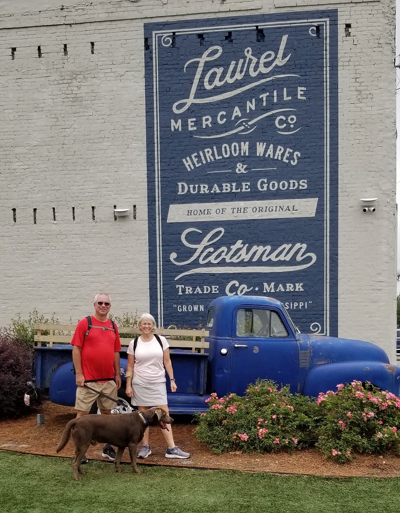 We stayed two nights in Meridian, Mississippi about 60 miles north of Laurel. We decided not to stay right in Laurel as the hotels that acccepted dogs were poorly rated. I did not search apartment or house rentals of which there are several in town. I wanted to visit Laurel to see where Home Town on HGTV is filmed. Erin and Ben Napier are a couple that renovate turn of the century homes in their home town of Laurel. I love Ben’s wood shop furniture, railings, frames, swings, you name it, he makes …often out of the home’s reclaimed wood. Erin’s interior design and art projects, antique finds and color palette creations on the home’s in and exteriors are amazing. To learn more, go to: