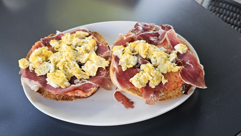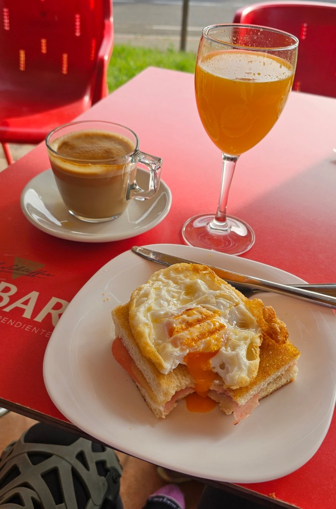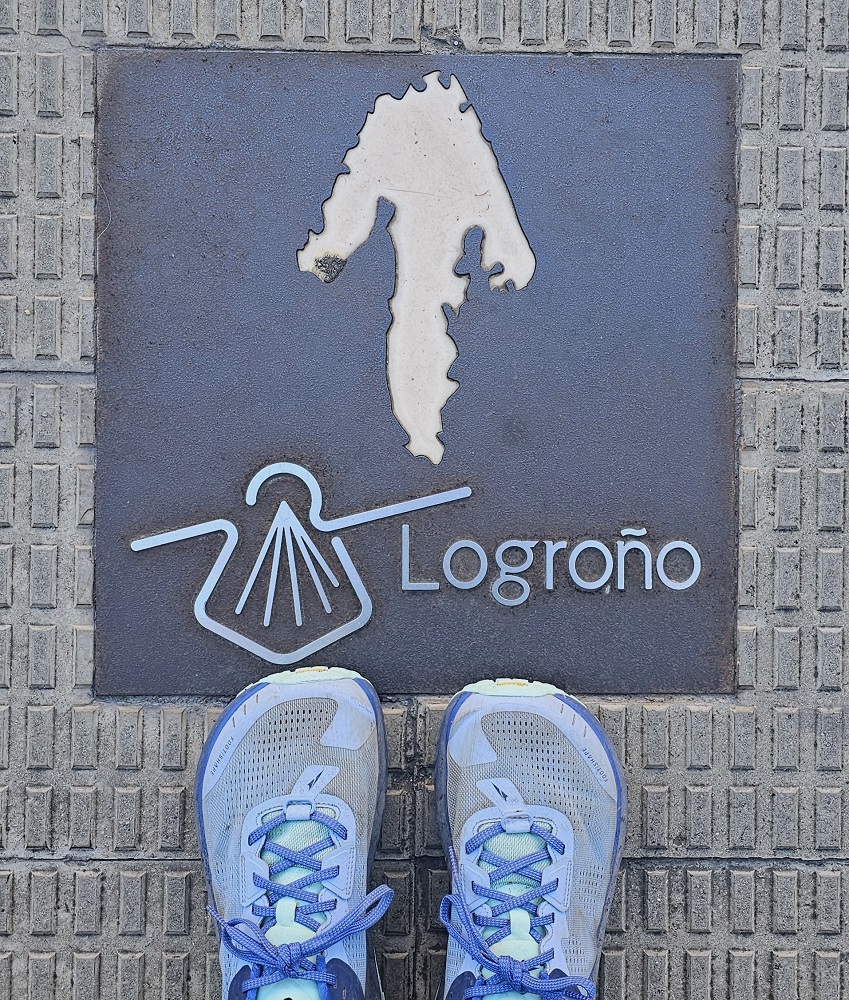 – After leaving our two bedroom apartment we walked 4+ miles and enjoyed breakfast in Logrono, celebrating passing 100 miles walked this trip.