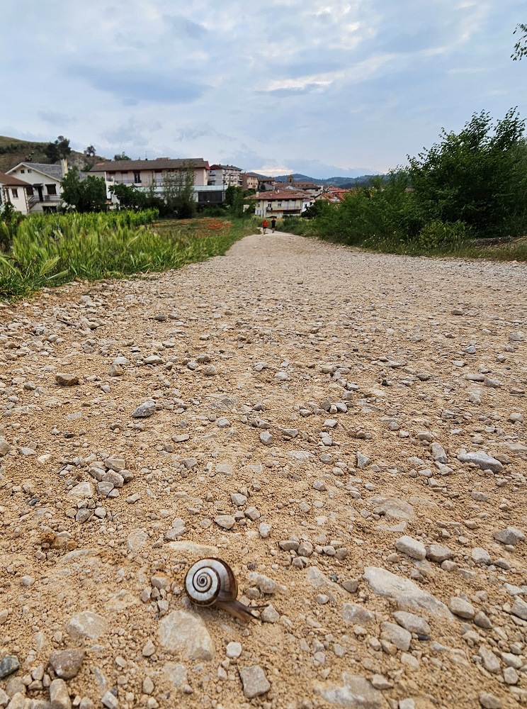 2. The surfaces you walk on varies a lot. My favorite is wooded trails, then uneven stony gravel. My least enjoyable ground under my feet is blacktop or concrete which today we experienced a lot! Into, through and out of any city like Logrono this AM.