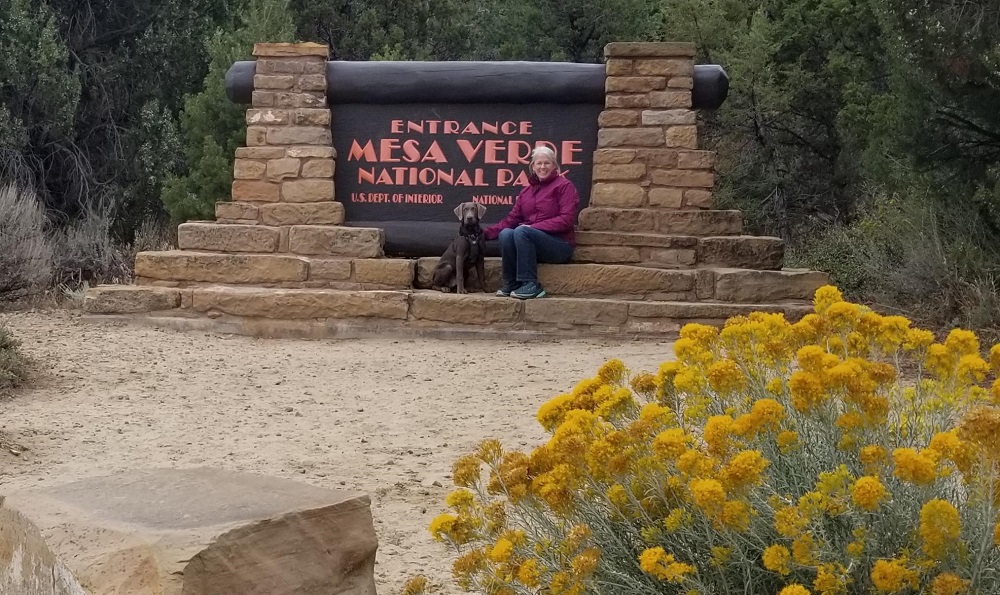 The mountains you can drive up to, within the park, top out at 8,600 ft. It was 35 and snowing/raining when we were there. Several miles past there is a section of the park where dogs are allowed on leash (in addition to any parking lot), and only on paved paths. Dogs are not allowed on the dirt paths or on any “trail”. Mesa Verde is not a very dog friendly park and a ranger we spoke to was apologetic. But, rules are rules, Rangeley agreed to be a BARK Ranger so we need to abide : )