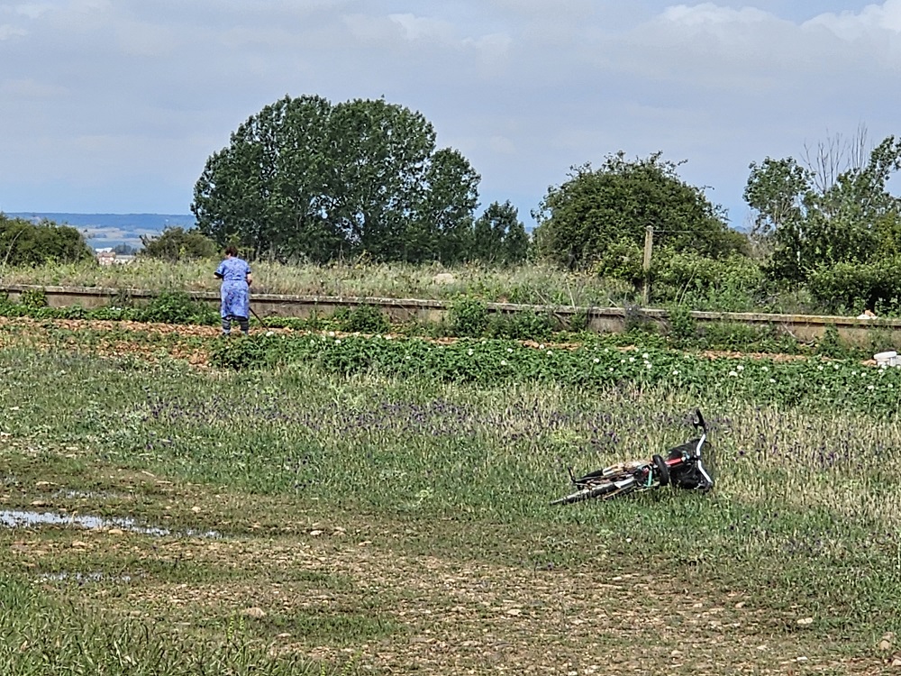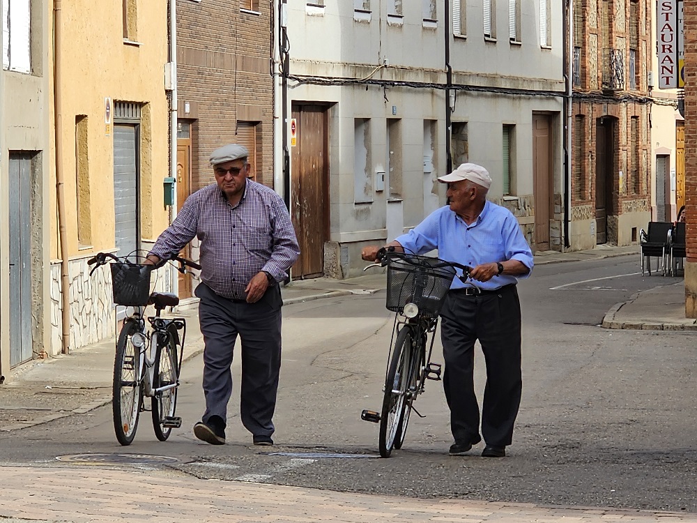 E: My pee cloth (Kulacloth.com) came in very handy today! 12 miles with no open cafe’s…i.e., no aseos (toilets). We went through two towns, about three miles apart, and there were no cafes or any businesses open and no public water fountains working at all, in the second town. Both towns were literally like old western ghost towns. After going to the end of the second village we finally realized that last night, there was a fiesta and there were beer bottles and debris all over a public parking lot area where they must have had a band etc. So, everyone must have been asleep because the fiestas don’t end until about 7:30 in the morning! It was 9:30AM when we rolled through. It is Saturday morning and not a soul was on the street.