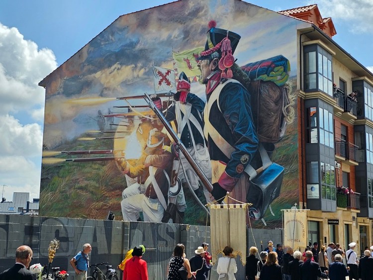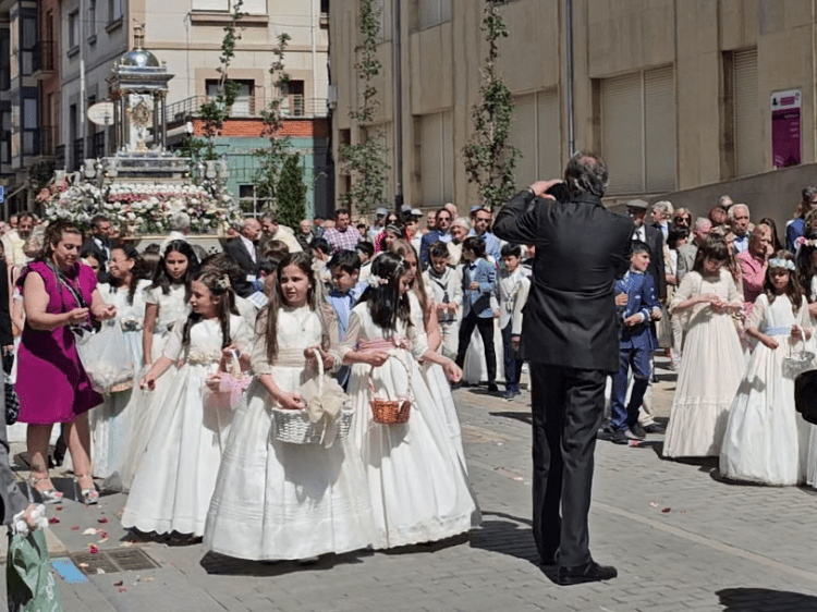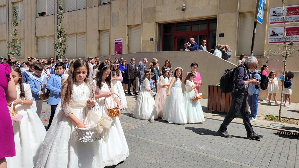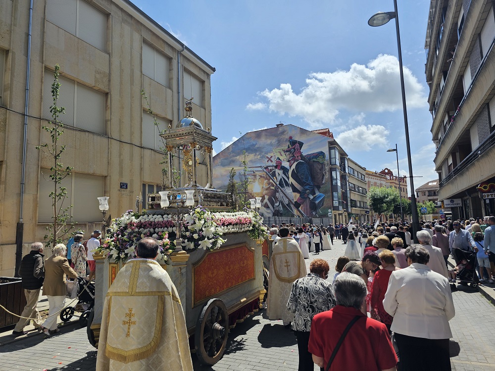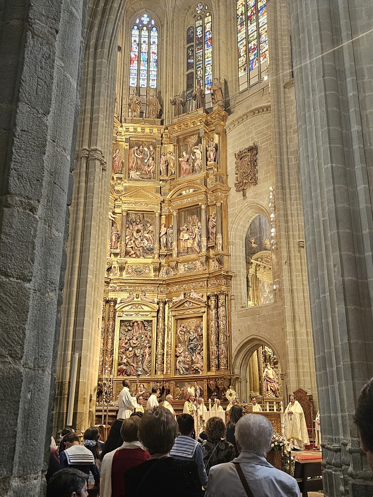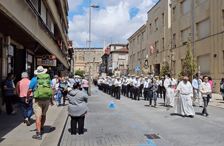 We were following the Camino into Astorga and noticed there was an entire plaza roped off. As we continued walking, I heard music playing, so we veered off the Camino by one block and there it was a procession of marching bands, children in very traditional church attire and priests fully garbed heading to the plaza where we just were. We were told it was celebrating The Feast of Corpus Christi.