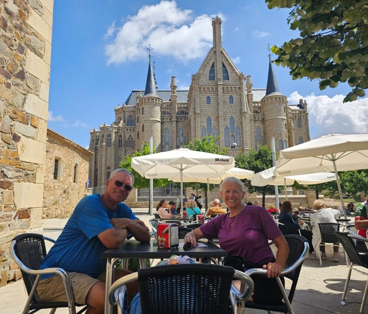 We found a cafe to enjoy a late lunch, across from the Gaudi building. Then we made our way to the next town about 3 miles West of the Astorga.