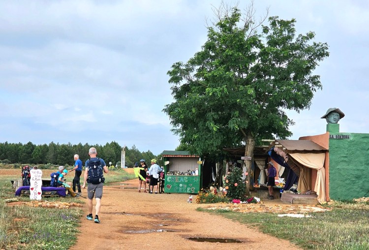 One of our “hippy stops” was there again. The gentleman said he’s been there for 14 years! He only takes donations. Whatever he gets he gives to pilgrims that cannot afford to donate or pay for a bunk that night somewhere. I had leftovers from last night’s dinner and shared with many people at this stop. Pimienta Padron’s! Roasted peppers with sea salt. I love them!! There was Nutella at the stop so I certainly benefited by putting that on my banana as we all chatted a while before moving on.