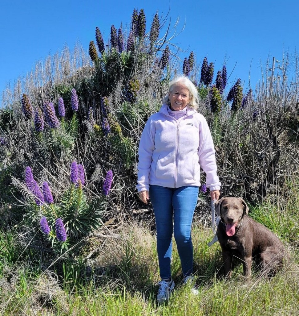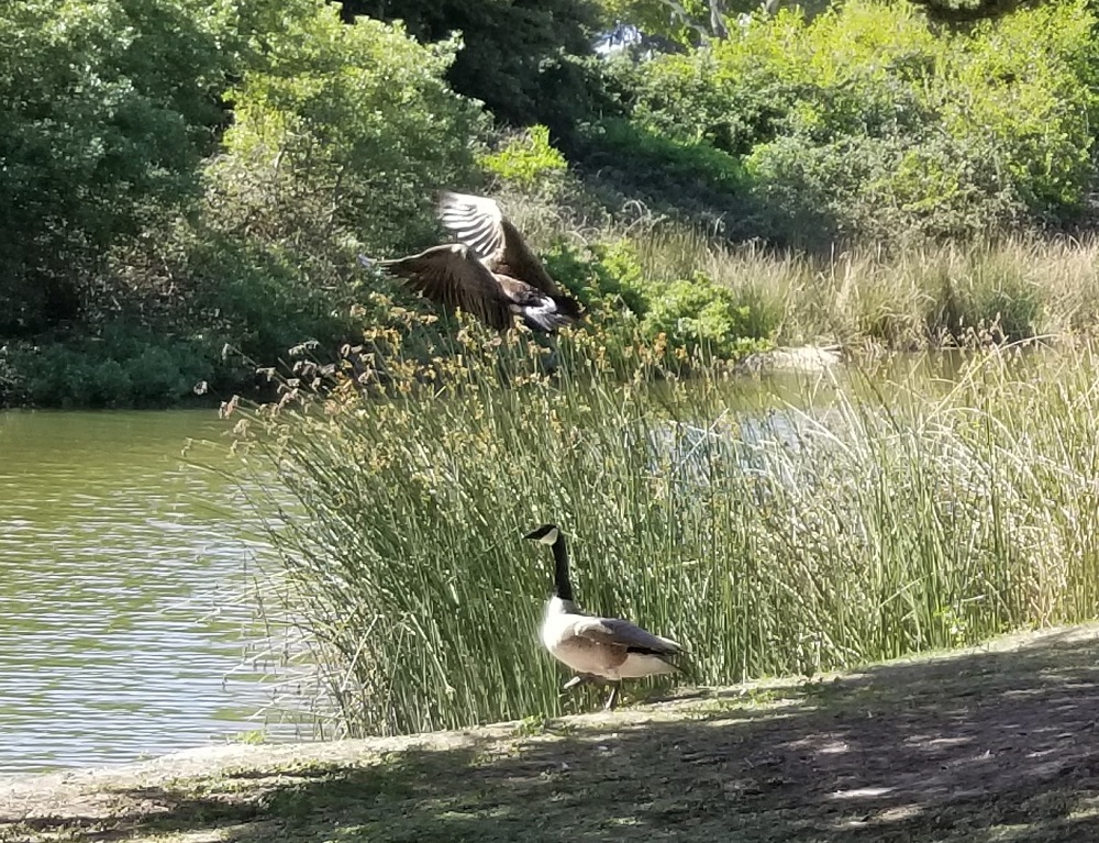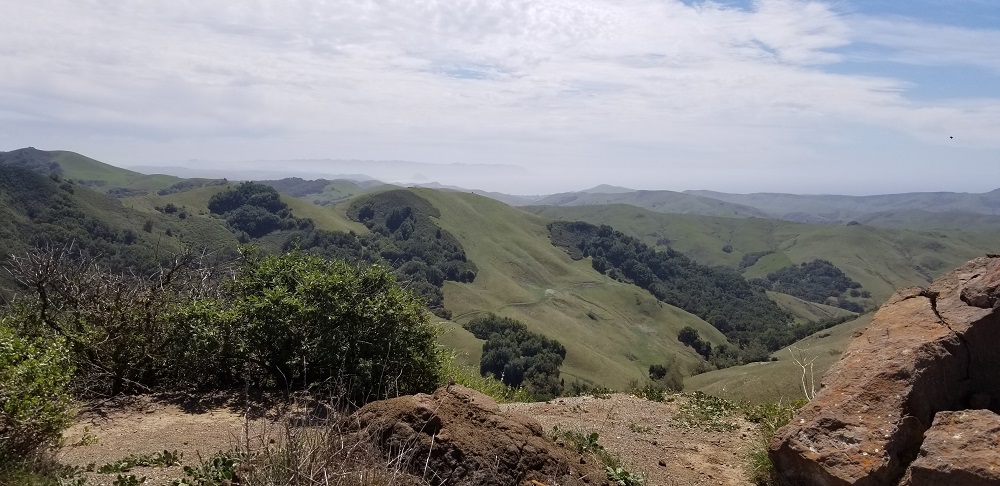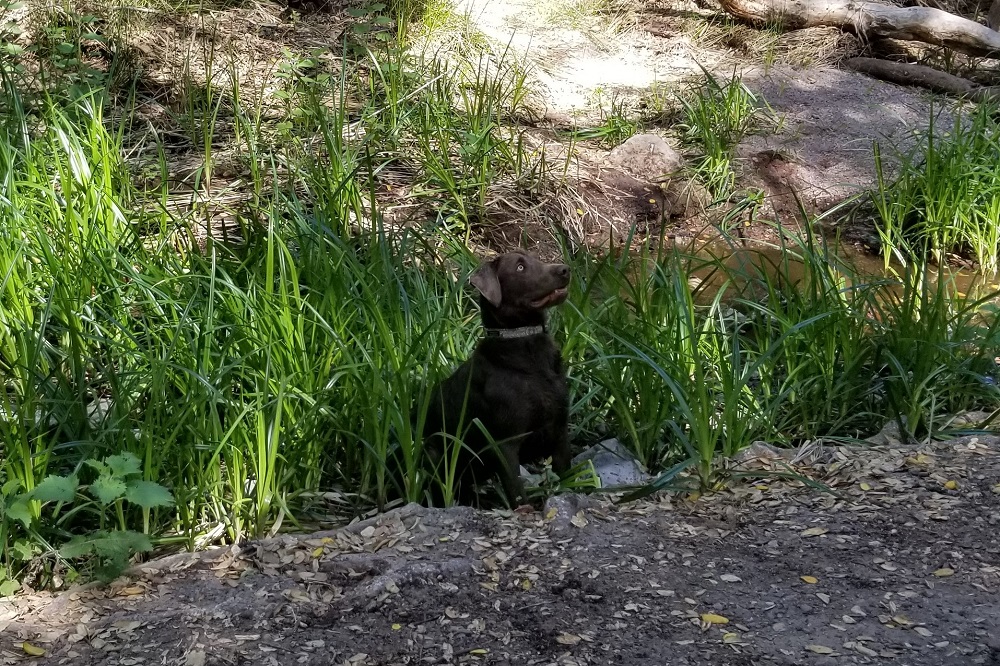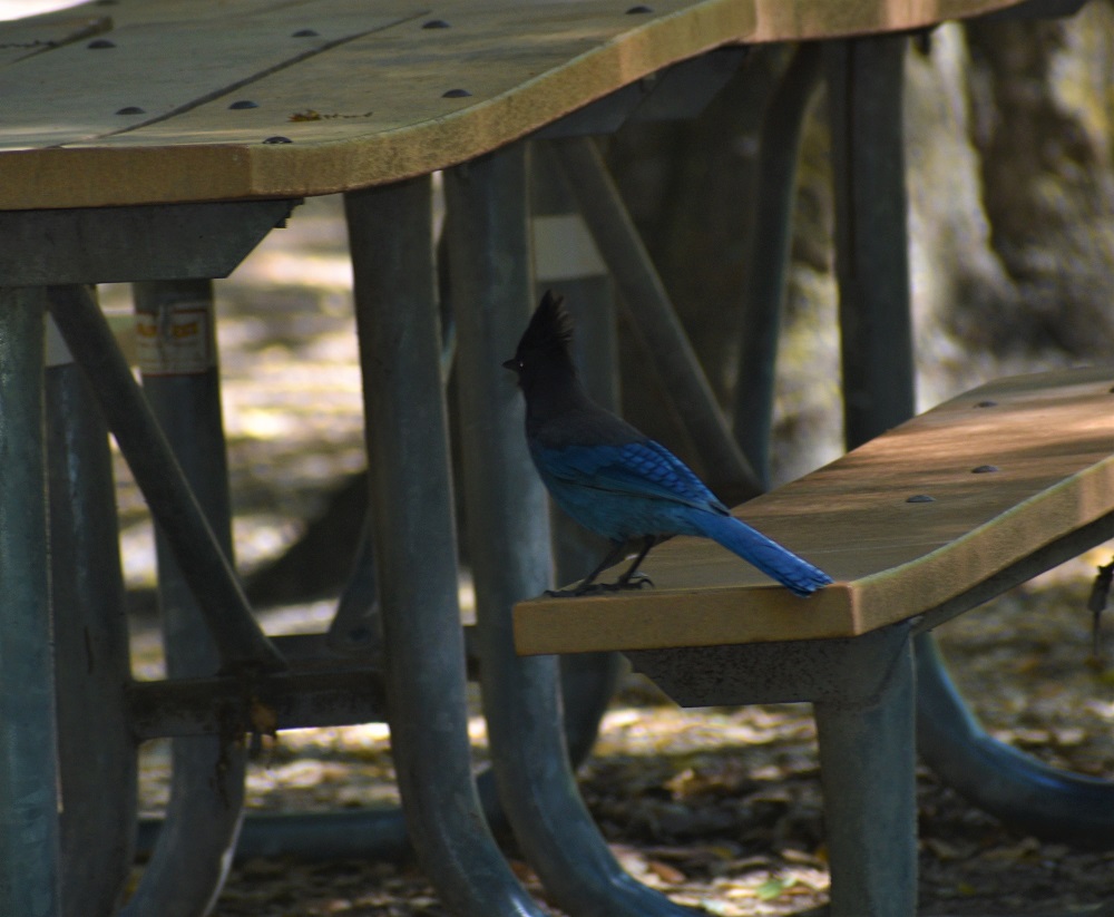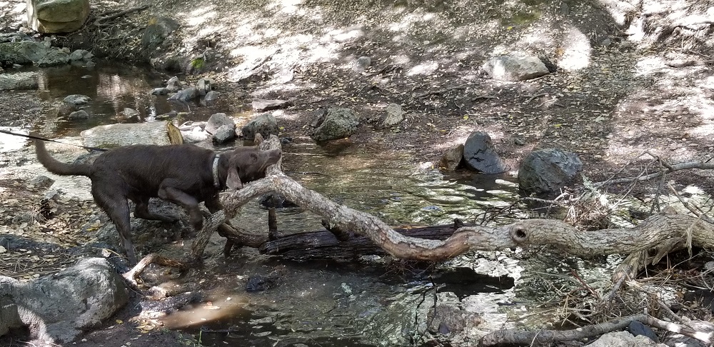 We drove Pinnacles Parkway to Old Pinnacles parking area then up to 1,200 ft at Bear Gulch. It is a very small parking lot but after a few minutes of patience someone opened up a spot for us. Rangeley loved the stream in a very wooded picnic area. If you do not have a dog you can hike to the cave entrance from here and Bear Gulch Reservoir. I really enjoyed the bird’s choruses and watched the chipmunks scampering up and down the trees while Rangeley picked up large branches and dragged them to the stream to play…whether Gary on the other end of the leash wished to join in or not!