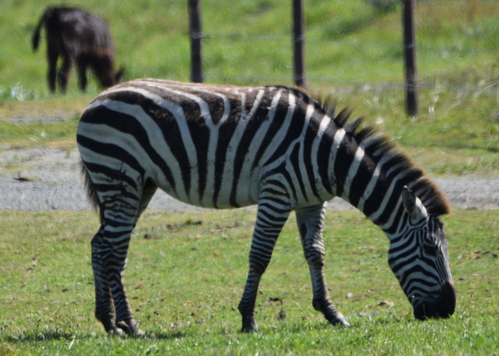We are taking our time driving to Pinnacles. We drove through San Simeon, CA where the Hearst Castle is, but unfortunately it is closed. But one of the previous Hearst Zoo inhabitants from the 1930’s are still thriving and visible from the road, Zebras! We enjoyed viewing some of the 126 in the herd, graze with the Hearst Ranch cattle. The zoo, formally called the Hearst Garden of Comparative Zoology, was the largest personal collection of animals in the world during its time. See pics.