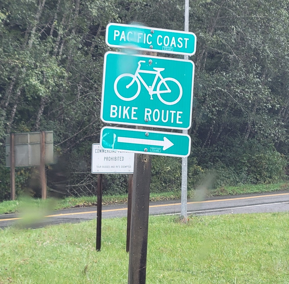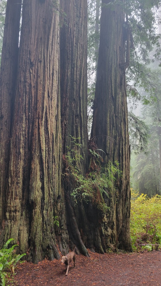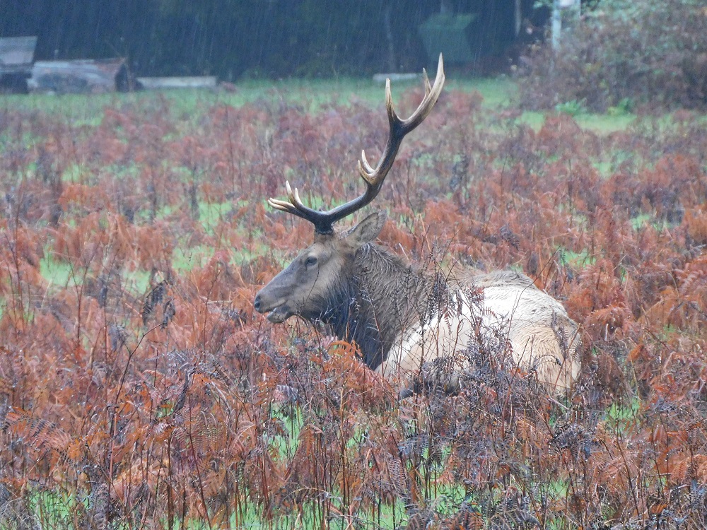 In the south section of the Park we did inland things, figuring he had had enough water. My decision, certainly not his. It continued to rain hard, but it did not affect any of our activities. The picture of the elk (below) I took while seated in my car. If you look at the upper part of the photo you can see all the rain drop streaks. I didn’t want to get the camera wet. This trip down the coast has been fun for me. I rode my bike through here in 2018. The big hills are much easier with a car by the way. When you are pedaling a bike you see much more as everything is in slow motion compared to being in a car. There were fun reminders everywhere the past couple of days of that great trip.