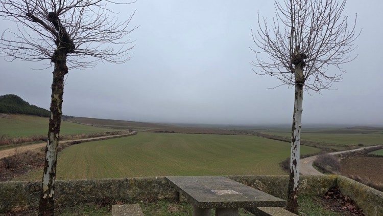 The first town was Hornillos. Nothing was open, but there were several construction workers making improvements in anticipation for the return of the pilgrims in March. I am still very much in farm country, so the tractors were out grooming the land.