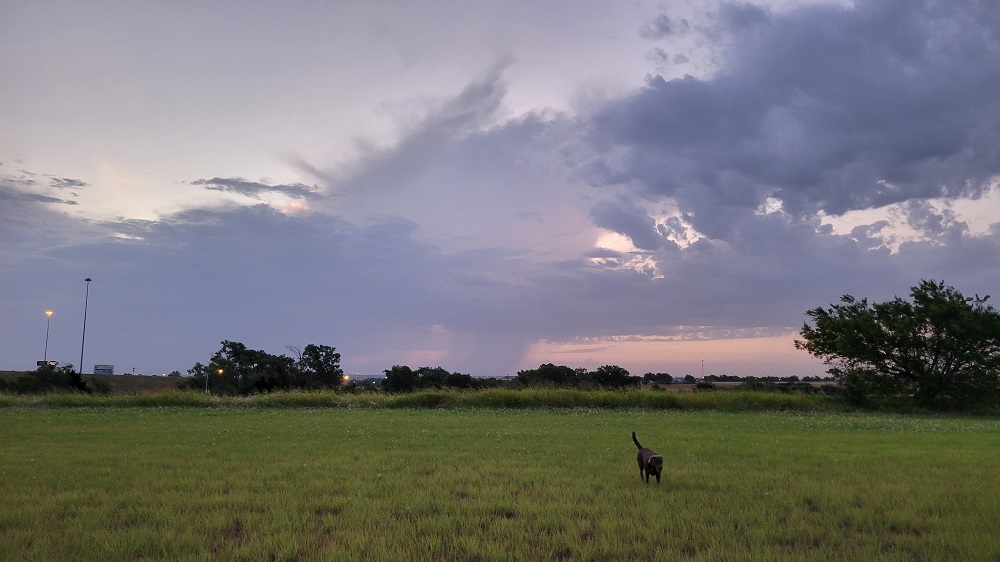 Traveling alone with a dog in the summer is tough. This spring I could leave Rangeley in the car for a few minutes while I ran inside a store or restaurant to grab something. I also tend to keep driving as it is too hot for side trips. Yesterday in Oklahoma I was pulling into a rest area but it was 102 and very sunny. Rangeley was comfortably sleeping in the air conditioned car, so we just kept going.