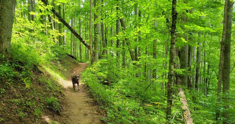 We walked 1.6 miles south till we hit the border of Great Smoky Mountain National Park. The only marker that it was the park boundary was a no dogs allowed sign. This is one of two places on the AT where dogs are not allowed, the other being on Mt Katahdin in Maine. We didn’t see another person the entire hike. There was thunder rumbling in the distance the entire time we were hiking, but no rain fell on us.