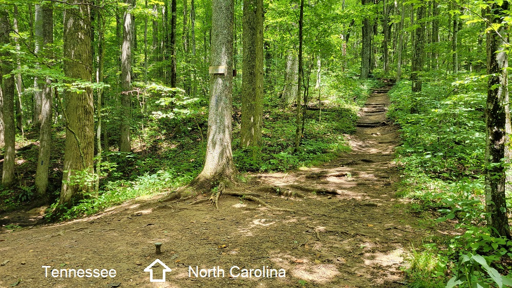 We then headed to Sam’s Gap. I was here on May 3, 2014. I remember because a local geocaching club did trail magic as we hiked through and May 3rd is our wedding anniversary. When Cooper and I came through in 2018 we got caught in the rain here. It was probably the hardest I have ever seen it rain. We talked how it felt like someone was dropping a 5 gallon bucket of water on us. Rangeley had another fun hike heading north from here. No good streams, but still fun. The trail follows the Tennessee North Carolina border. There are surveying markers in the trail. (See pictures)