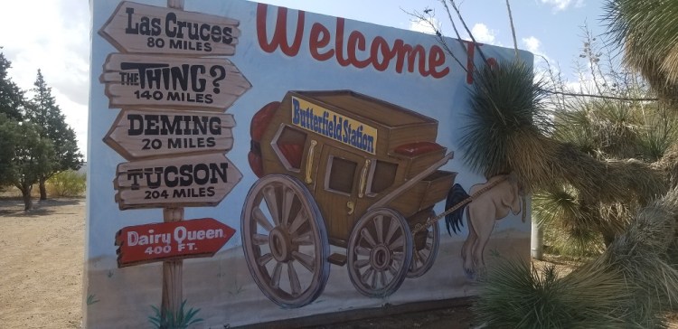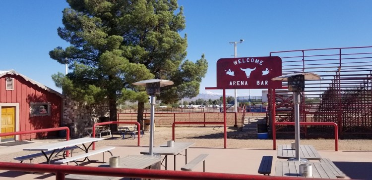 Before we stopped at the hotel for the night, we stopped for lunch at a local watering hole called the Arena Bar in Benson, AZ. They host rodeos, have a laid-back local bar and when we were there we realized they were only serving a couple appetizer items, not lunch food so we ordered nachos and two Coronas and had a great time hanging out on an outdoor picnic table with Rangeley. We could imagine the hoot-N-hollering audiences when a rodeo was taking place in the arena beside us.