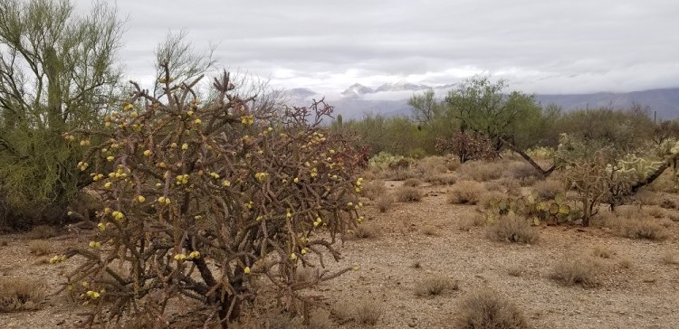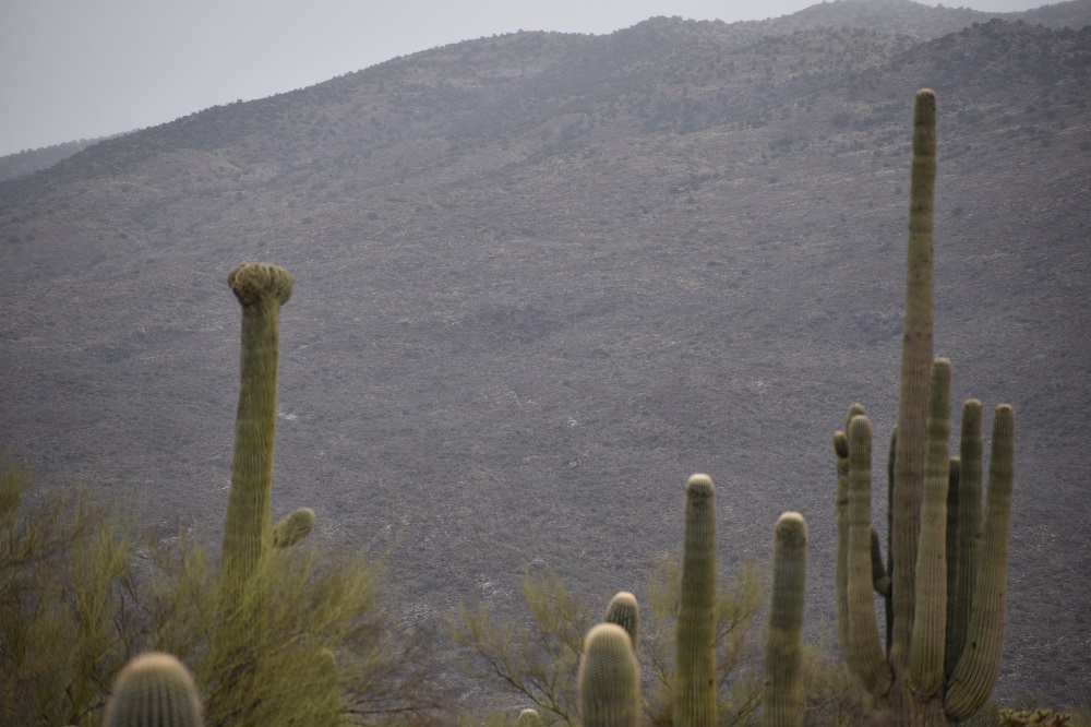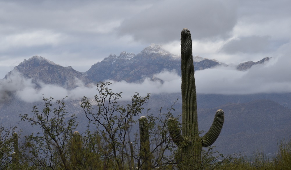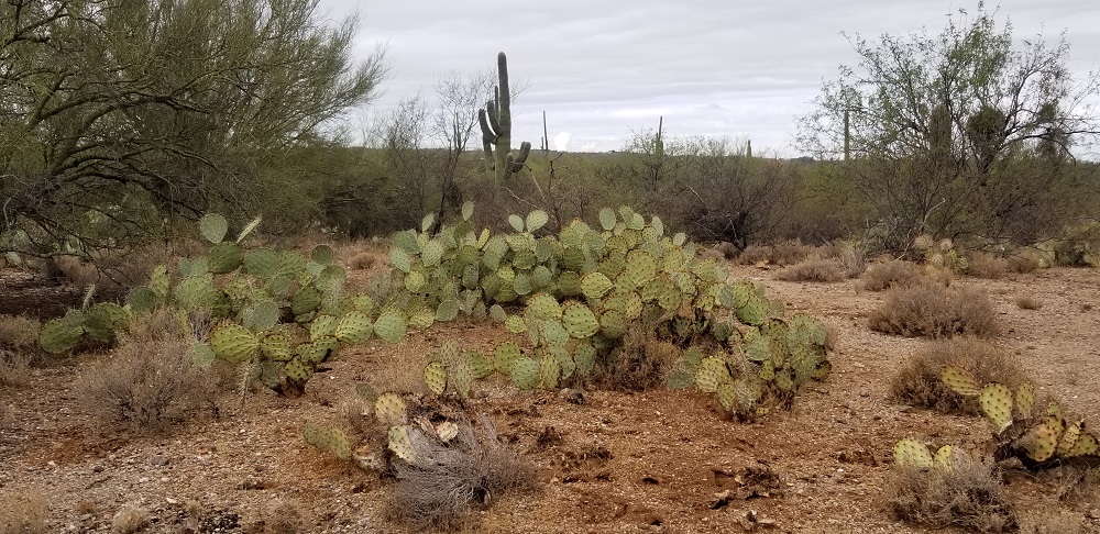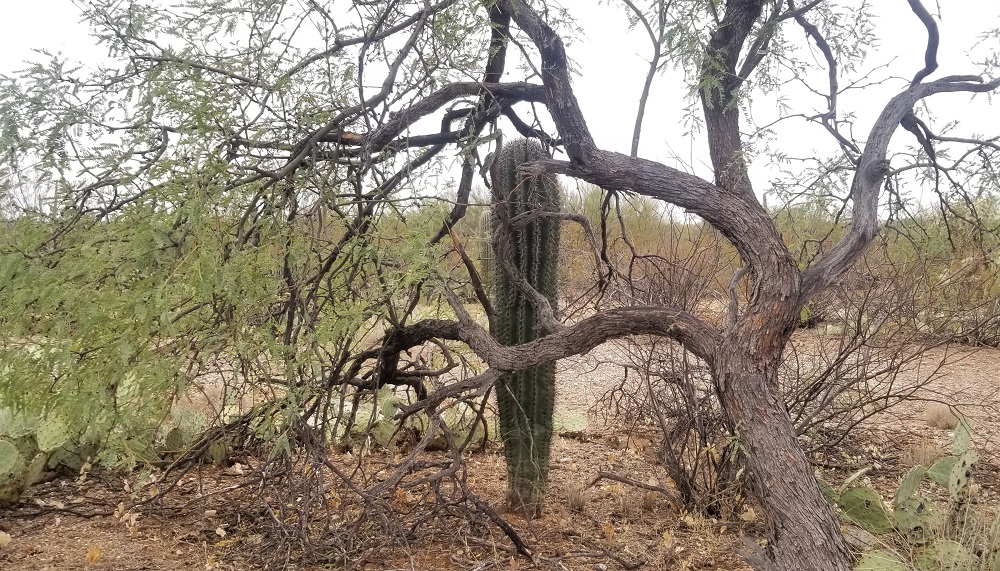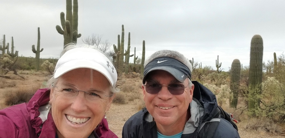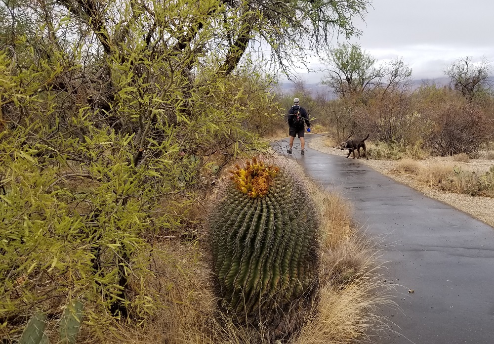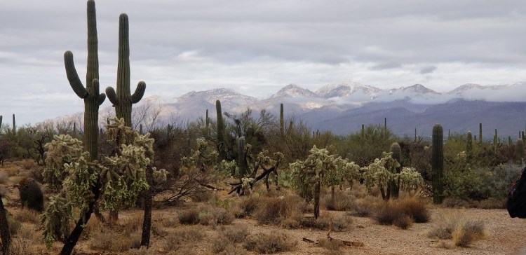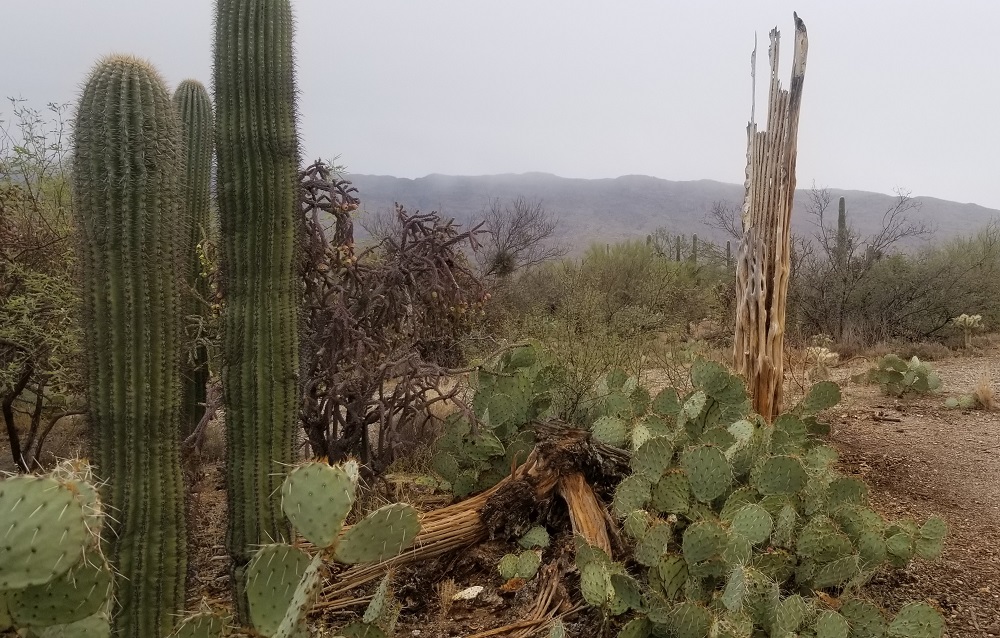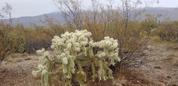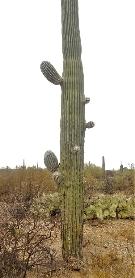 We drove the 8-mile Cactus Forest Loop Drive through the Sonoran Desert, in the Saguaro East Rincon Mountain District. There are two units in Saguaro NP and the west’s Tucson Mountain District, is a bit closer to us in Phoenix so we decided to do just the east side this trip. It is not connected, in any way, to the east unit. We walked the two trails that Rangeley is allowed on as this park is not very dog friendly. As in many of the parks, the wildlife, and the uniqueness of the cactus here, can create a challenge between nature and canine. Our first stop was the 1.4-mile out and back Mica View Trail. Unfortunately, the day was overcast, 40 degrees and sprinkling the whole morning. We laughed that we have traveled all over the United States and have had fabulous weather. Now, one of the very few unfavorable days – weather wise – this entire trip, is in our own state of AZ. It’s been very hot in Phoenix (90-100 degrees) lately and we only get about 6 inches of rain a year. And we finish our park tour in cold rainy weather : ) We took pictures and enjoyed the cactus that we so often take for granted. We hike in the Sonoran Desert in South Mountain Preserve in Phoenix often, but despite the inclement weather, we saw the plants and terrain of this national park in a little different light. It was our last stop on our 27 parks in a row adventure!