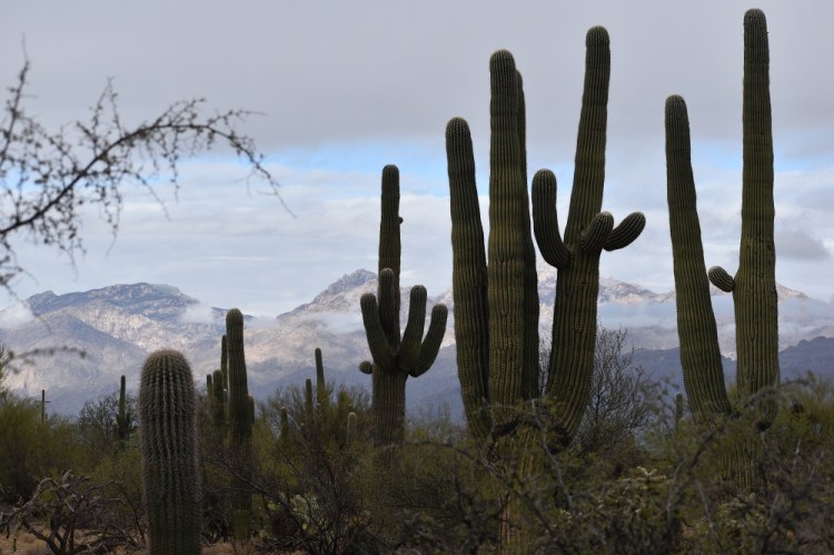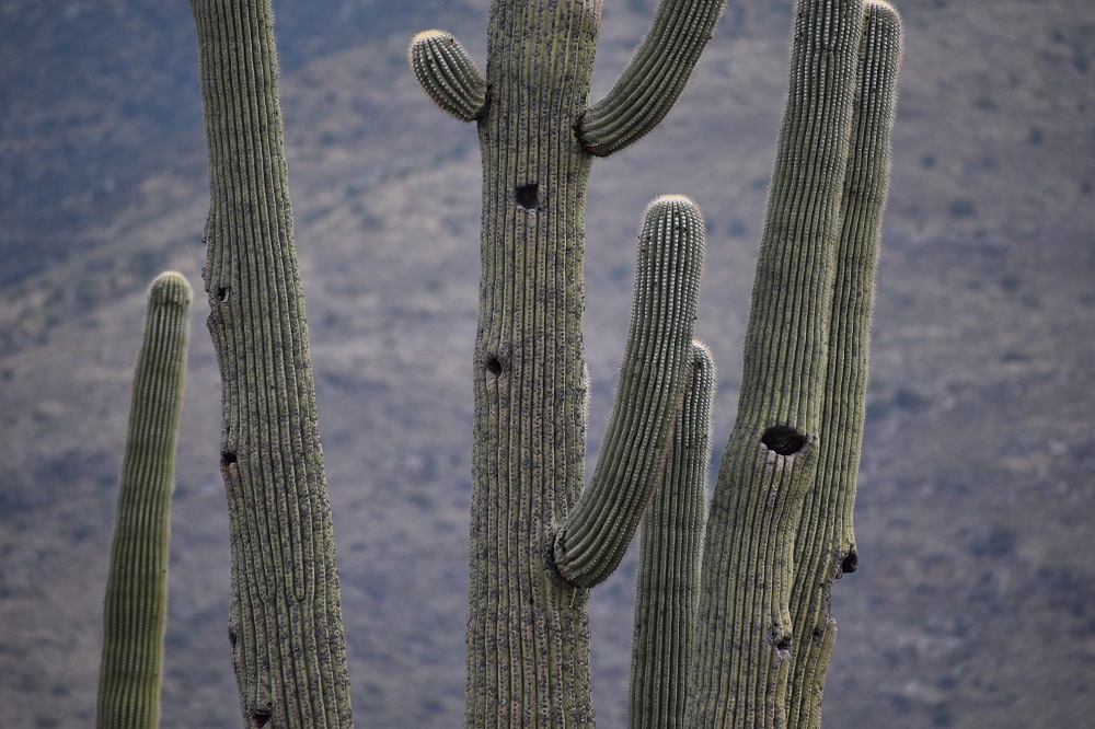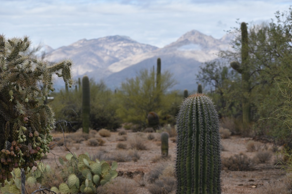 From Wikipedia – Split into the separate Rincon Mountain and Tucson Mountain districts, this park is evidence that the dry Sonoran Desert is still home to a great variety of life spanning six biotic communities. Beyond the namesake giant saguaro cacti, there are barrel cacti, chollas, and prickly pears, as well as lesser long-nosed bats, spotted owls, and javelinas.