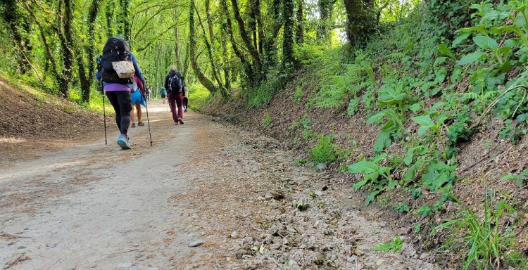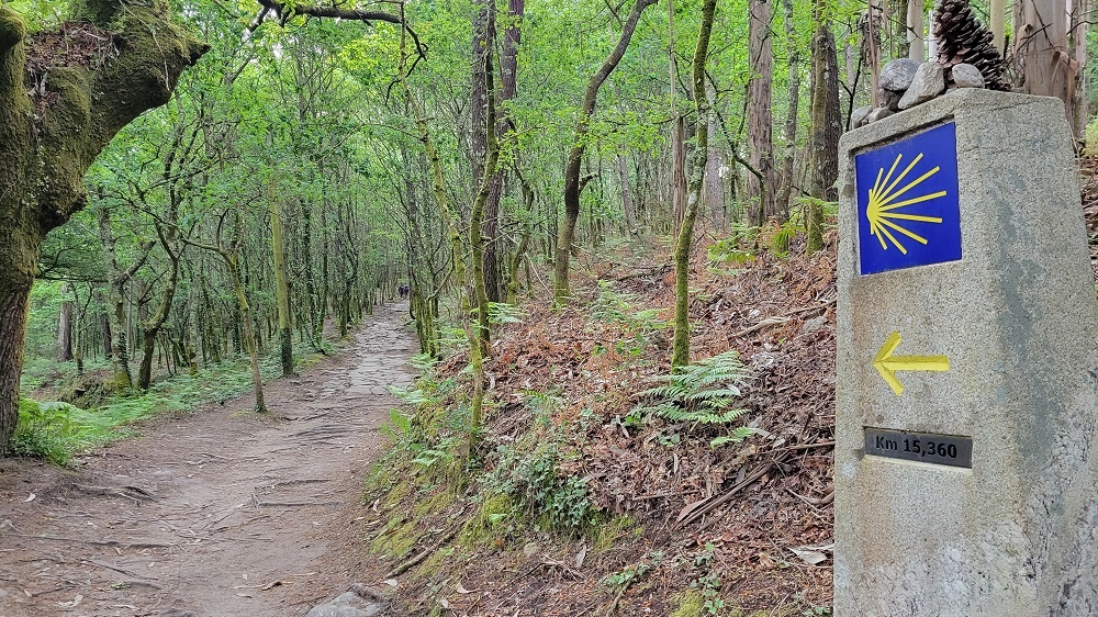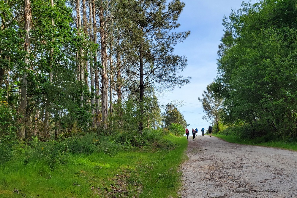 We were very pleased we walked extra miles yesterday. NZ, Denmark and I were picked up at 7:30 and driven 4 miles north where we had stopped yesterday. Sunrise this morning was at 7:39 and sunset will be at 9:27 here in Santiago Spain. (In Phoenix today sunrise was at 5:46 in the morning and sunset is at 7:06 in the evening. The length of day isn’t that different from home, but daylight is shifted basically 2 hours later.)