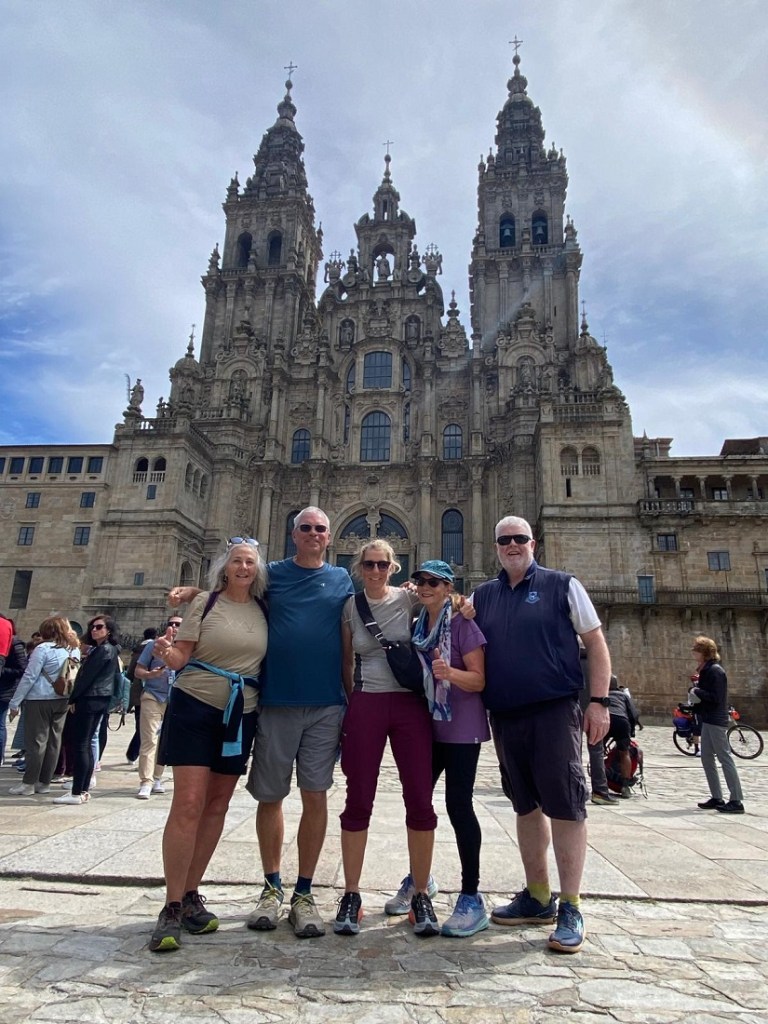 Today’s walk into Santiago was interesting. NZ wants to keep walking. She still has 3 months left on her travels all across Europe and Asia before heading home, but she is already planning a walk on the Frances for next year. Denmark still works full time so she can only get 2 weeks Holiday at a time. This was her second Camino and she is planning to return next year to do the Portuguese central route. England is 70. She had back problems and needs a hip replacement. She did the Frances before her health problems and did the shorter Portuguese Route this time to see how her body would hold up. She carried a full backpack the entire way. She is certainly an inspiration on how to keep moving forward when life throws challenges at you. She also is planning to return for another Frances. None of them were excited about finishing. When we actually arrived in the main Plaza there was not even a congratulations shared. Ireland was also with us and his is very understated. He and I talked sports for the last hour of the walk. He also plans to return and he is still working as well. We took a handful of pictures and then went to lunch, just like the others days on the path when we finished walking. The only difference is, tomorrow there is no where to walk to.
