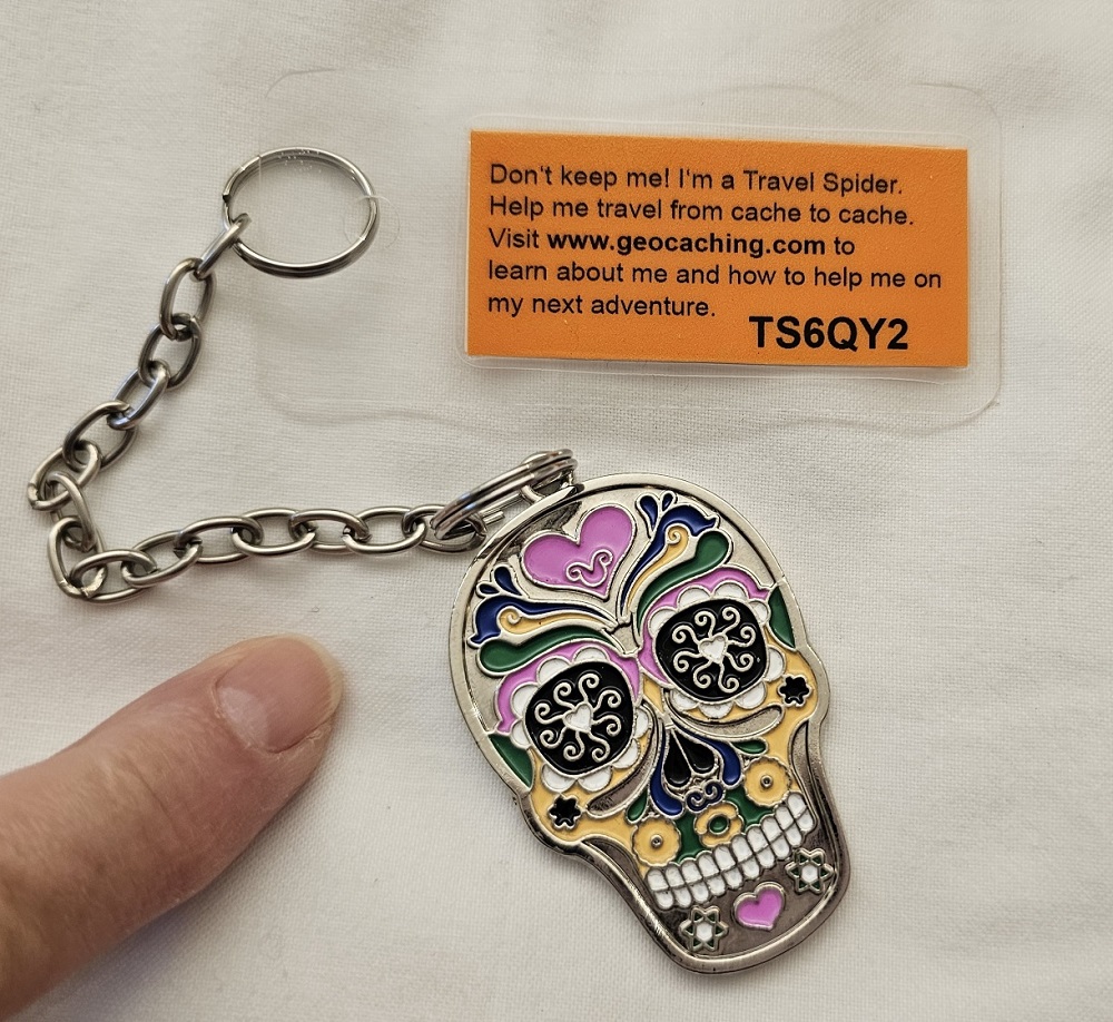 Gary and I enjoy geocaching and we found one less than a mile from the hotel. The cleverly hidden container in a fence post, with loads of Travel Bugs in it, was a cool find. Travel Bugs are items that are placed in a geocaching container to be removed, logged into your online account and then placed into another geocache elsewhere. After reading that this Travel Spider, a key chain of a skeleton’s head in Mexican Day of the Dead colors, wanted to go to Mexico, we felt it was our duty to fly it to Phoenix with us in the morning. We will place it into a geocache in Phoenix soon. Unfortunately, we needed to add a note to other geocachers to be careful of bees/wasps/hornets near the cache…I was stung on the eyebrow and leg. All good now, but we kinda had to laugh…I’ve been outside, all day, for almost 7 weeks straight, in the woods, at the beach and more and no bites or issues….I come to the city of Madrid and was bitten three times in one afternoon! A spider bite on my arm not long after the bee stings! Nothing a little ice and time won’t fix…and a shared pint of Ben and Jerrys, Cookie Dough ice cream!