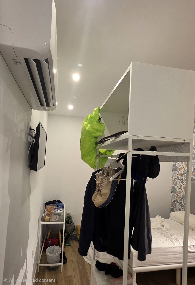 I arrived at the hotel a bit after 2PM. They had sent me a text with a code to the front door and my room number (12) with a code. And instructions to turn on the heat in my room. I got to the front door and could not get in. I called the number I had, she spoke only Spanish, and finally she just buzzed me in. I am not sure where she is, but no one is in this building. The room code worked fine. I turned the heat on, so the room will be warm soon. The shower turns out to be one of the best I have had this trip. There is space to move a little. Most showers are very small. There is great pressure and the water is very hot. The Spaniards love their water hot. Best of all it is a typical shower head that sprays out at an angle. I have had a lot of the rainfall style showers, which I don’t like and at least 3 times it has been a hand held only shower. Nowhere to clip it to the wall.
