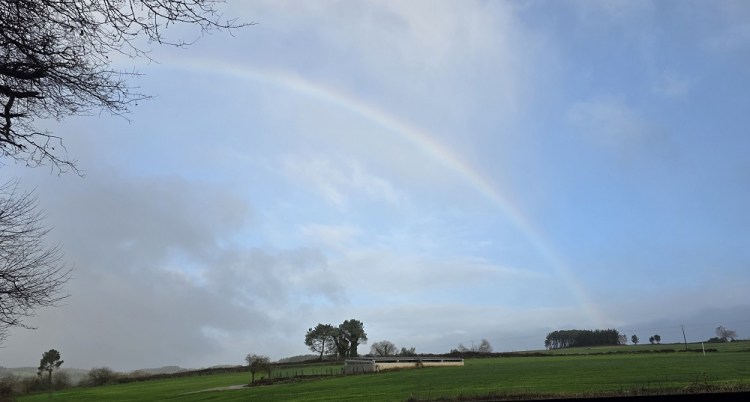 Today’s forecast was for a 10% chance of a shower mid morning, but partly sunny and upper 40s. Sure enough the rain did come about 10AM, but only for about 15 minutes. I did get a pretty rainbow out of it though. Otherwise it was dry all day!