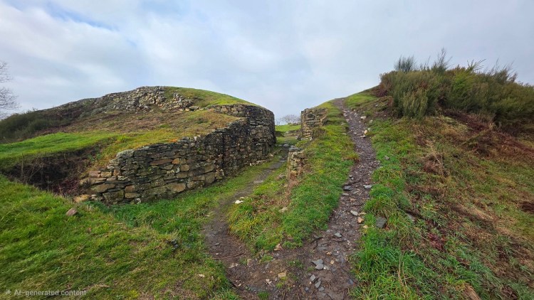 The terrain was up and down. Nothing big or steep. The path is very green as you will see in the pictures. There are a lot of amazing stone walls in this area. Just before the café I walked through Castromaior. A settlement from 6BC. It is amazingly intact and you can walk right through it. It is very cool.