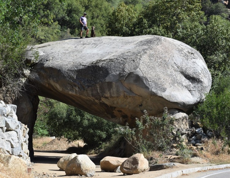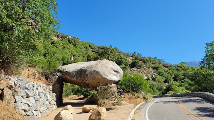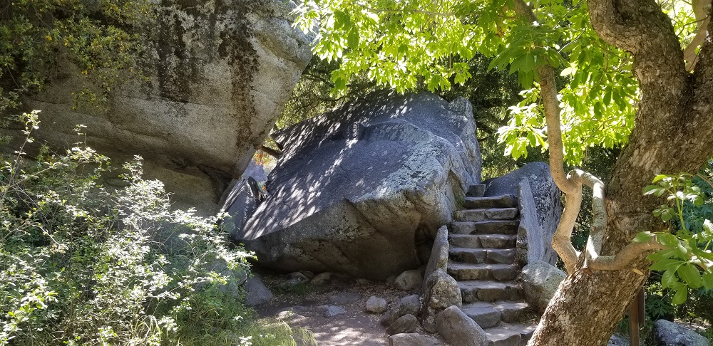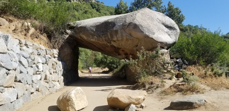 Our first stop was Tunnel Rock, a large granite boulder that covered the original road. Park visitors would drive underneath it. The road has since been rerouted. We were being a bit silly and risky but the pictures were fun to take.