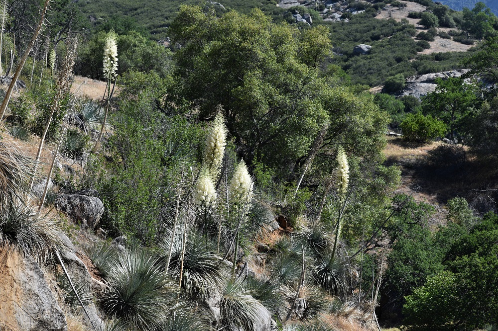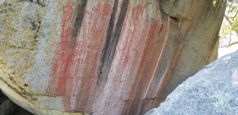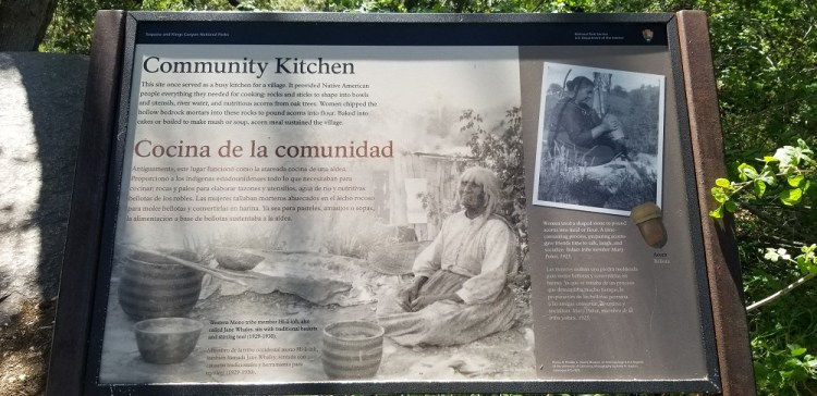 Hospital Rock is just up the road from Tunnel Rock. It has an interesting history in that 500 Potwisha Native American once lived there as early as 1350. The rock’s name came from two different incidences in the 1800’s where men were medically taken care of, for a broken leg and a gun shot wound, at this location by the Potwisha people. See pictures of the rock art on the quartzite boulders and the mortar and pestle holes they made to grind acorns to flour.