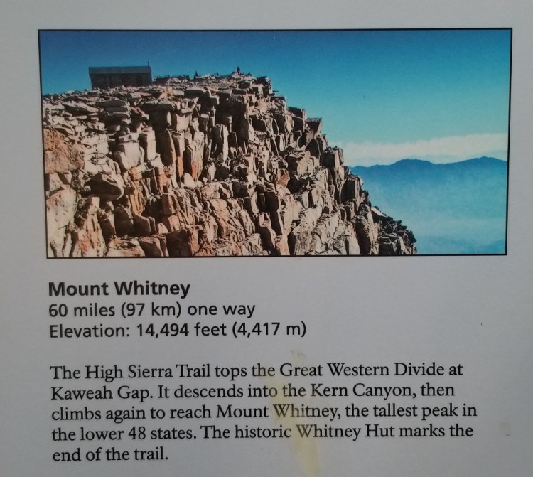 We are headed to Lone Pine, CA to see Mount Whitney next. I never wanted to know too much about the vertical terrain Gary climbed on the two Mountaineer Route trips he took to the top of Whitney, until now, after the climbs : ) We will stay in Lone Pine and hike a bit around Whitney’s base. We will spend one night before Whitney, in Bakersfield, CA, to visit my step brother. We are sad to come to the realization that after Whitney, Death Valley National Park is our last adventure before driving back to Phoenix.