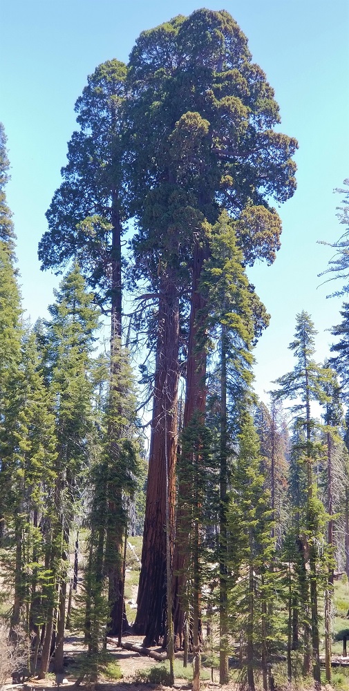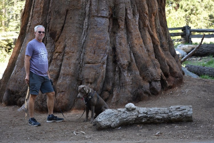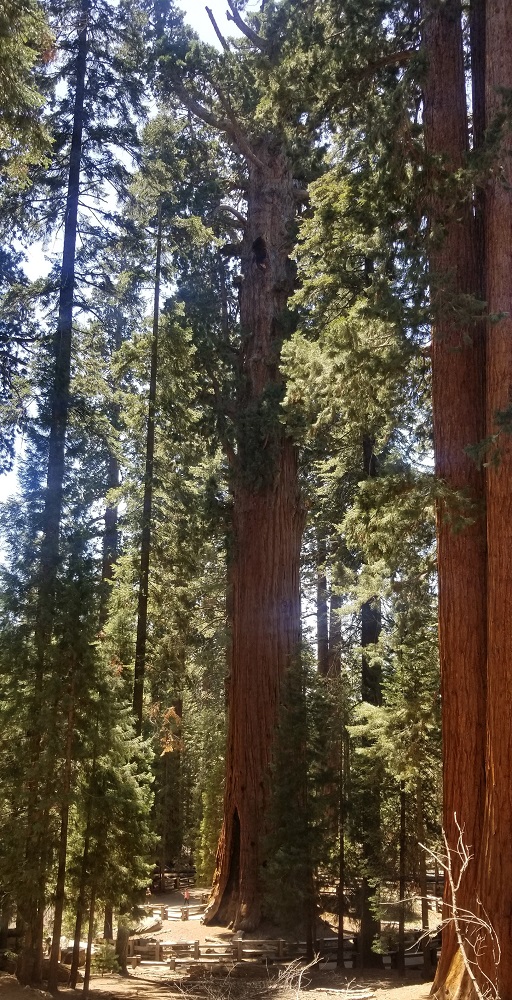 Our last stop up the Generals Highway was to see the famous General Sherman Tree. Rangeley remained with Gary in the former dump site repurposed parking lot while I walked the half mile one way to the tree. The black top and stone walkway descends from the large general parking area. (the Accessible parking and path are closer to the tree). The old parking area was torn up and 2.5 acres were “given back” to the forest!