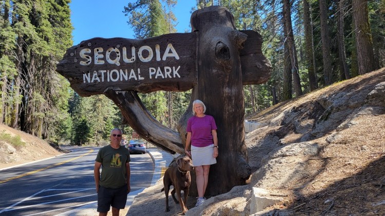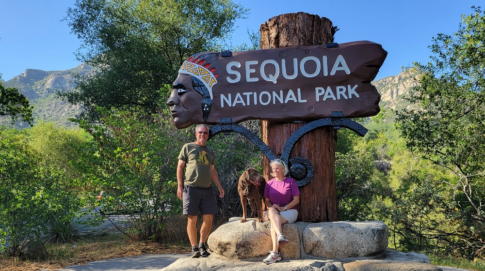 We enjoyed dinner at River View Restaurant, on the Kaweah River. We each had a great local Eel River Brewing Mocha Stout and Gary loved his hamburger with pastrami and swiss. My burger with sautéed mushrooms and swiss was delicious with extra pickles! And, yes, we both had a salad too! Rangeley was a bit tortured as the large, airy patio literally stood beside the gushing river providing a soothingly loud roar of the water tumbling over the rocks below our table. Rangeley could hear the river calling! The owner opened in the spring of 2020 and never required masks to be worn. The staff and almost all patrons did not have masks on. We loved the refreshing feeling of being able to see facial expressions and clearly hear conversations with wait staff and surrounding guests.