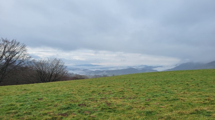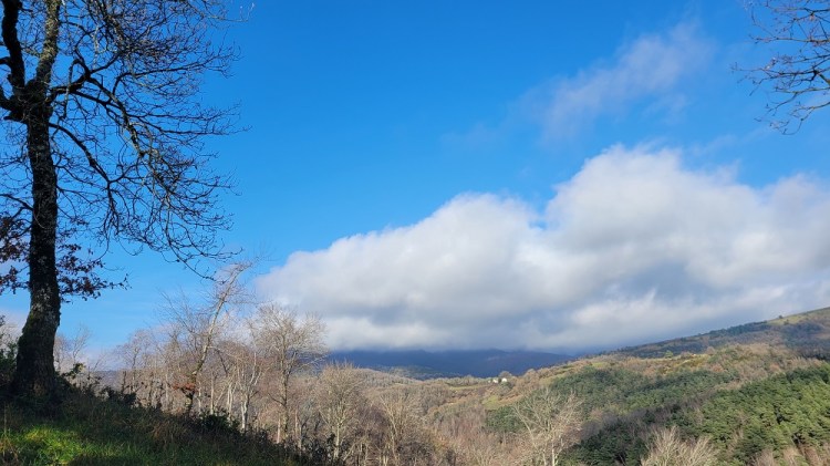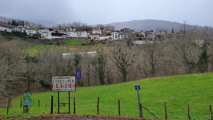 After a relatively long first day, people were tired. Lights were out at 9:00pm and people started stirring again at 7 in the morning. 10 hours of quiet is pretty good for an albergue. Breakfast was next door at 8am. It was very dark and half sleeting. By the time I ate breakfast it was light enough where we didn’t need a headlamp. My Florida friend wasn’t feeling well, so he stopped walking in Espinal, only 4 miles in. By that time the rain had stopped. In the summer it is popular to stop at all of the outdoor cafes. In January they are all closed. After noon the sun made a few brief appearances and the temps warmed up to the upper 40s. It made for a great day of walking.