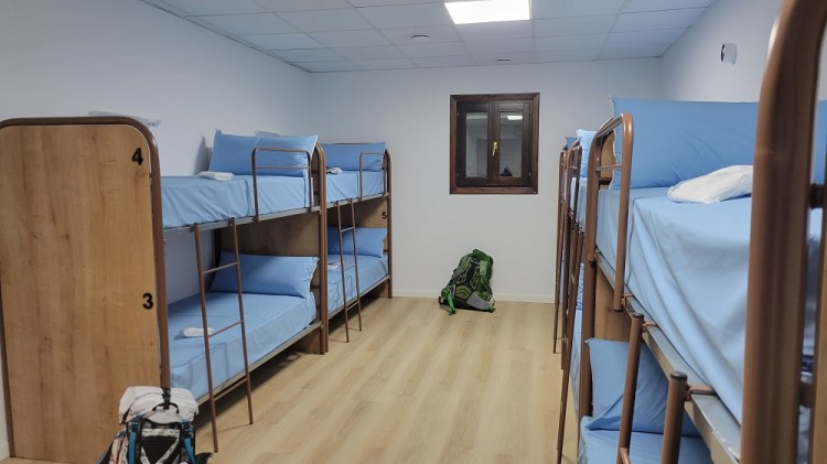 The albergue did fill up last night – 30 people in two rooms. I had a lower bunk on the far wall, which was nice. There was a group dinner offered which 12 of us took part in. I had the typical roasted chicken with French fries.