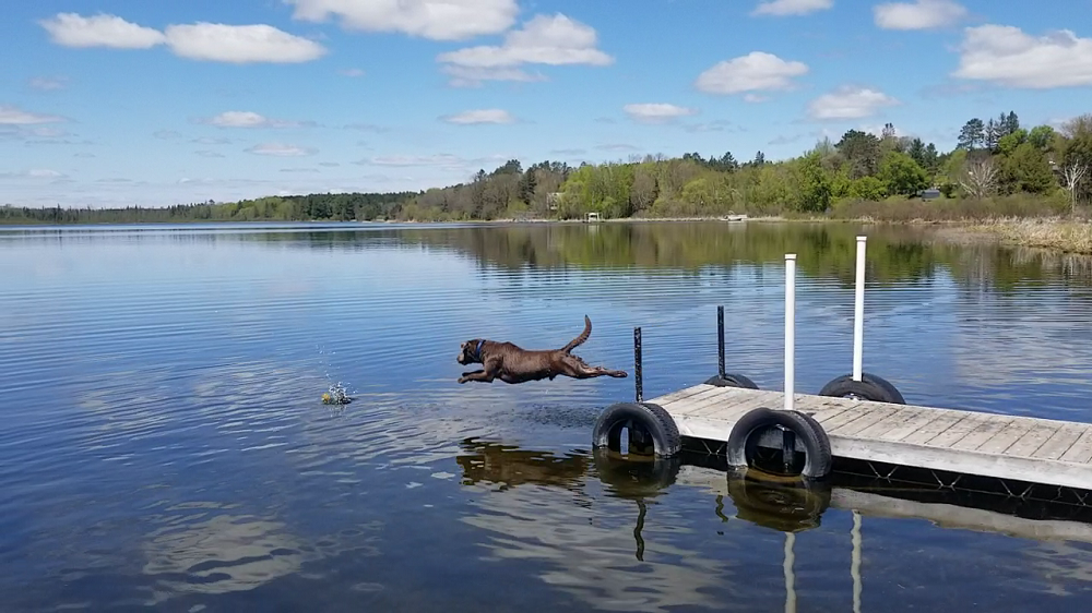 We stopped for lunch at a small diner and then took a stretch break at Bagley City Park on Lomond Lake in MN, pop. 1,000. Rangeley loved jumping off the docks and Elizabeth took pictures of birds. We crossed the Minnesota/North Dakota line and stopped in Grand Forks, North Dakota for the night at a hotel next to the University of North Dakota.