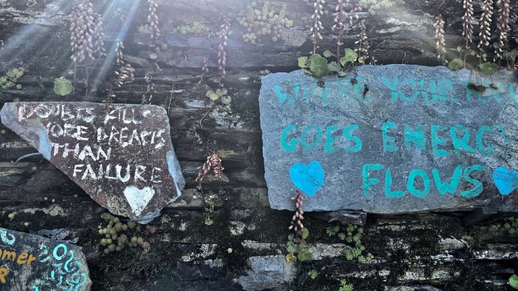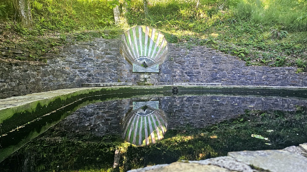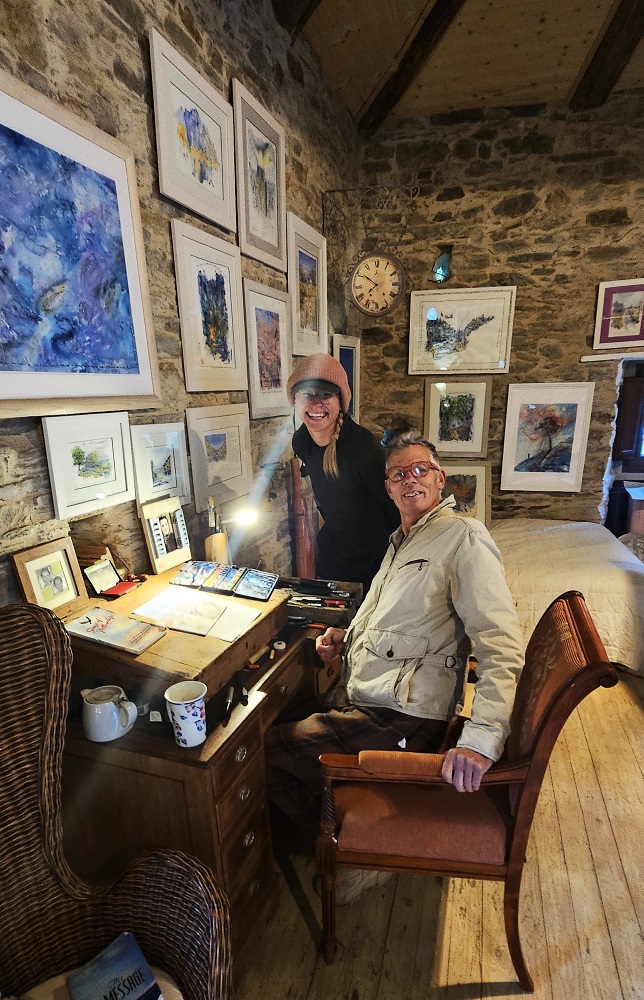 There is an art studio we stopped at early in the day and Chelsea and I got hand painted, watercolor designs on our credentials. The British artist moved there years ago and bought an old rundown but ancient building and a small parcel of land under and around the building to a stream. He said it was eight years of renovations over time and he lives and has his studio there now.