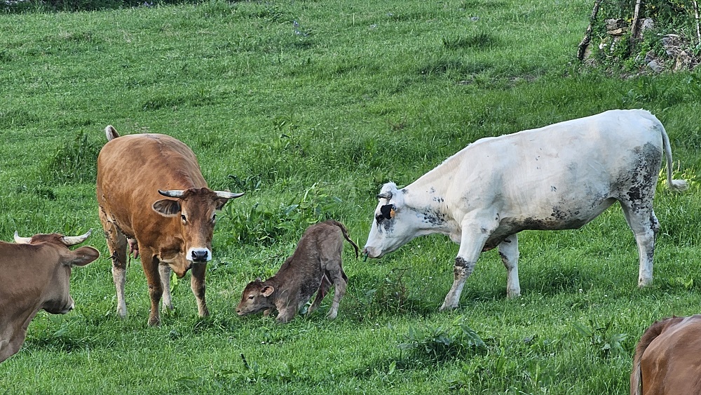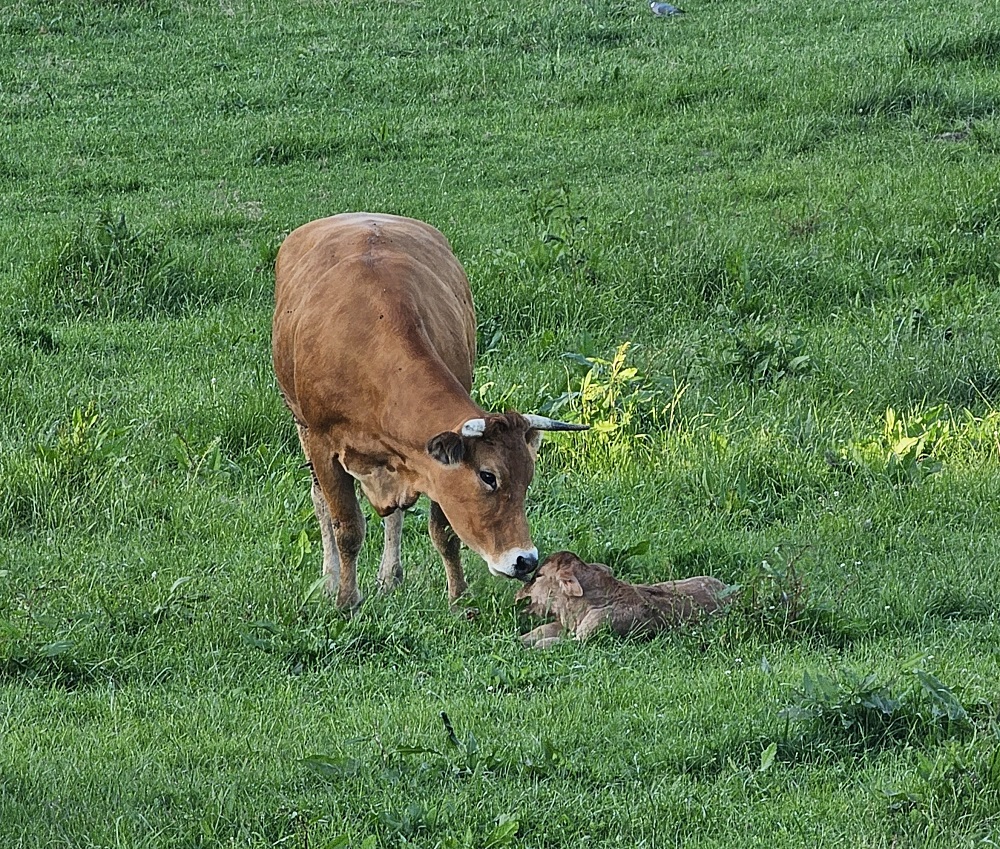 We saw 20 dairy cows walking down the road from the barn to a pasture, 10 goats being called by a farmer heading to the barn and the highlight of the evening was one of the cows gave birth in the field this evening! What a day!