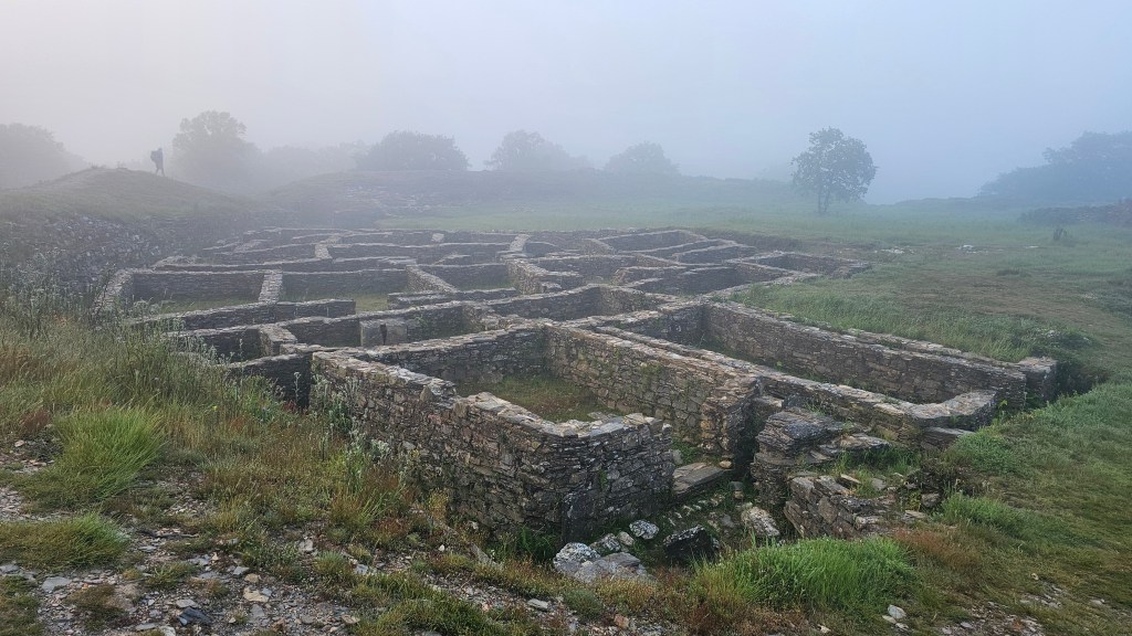 Gary: The day started out cool and foggy with a climb up to the Castromaior ruins. These ruins were inhabited from 4BC to 1AD. And we thought the 800s were a long time ago! It is very cool how everything is wide open and we can walk right through the area. There are several moats of dirt mounds encircling the ruins as well.