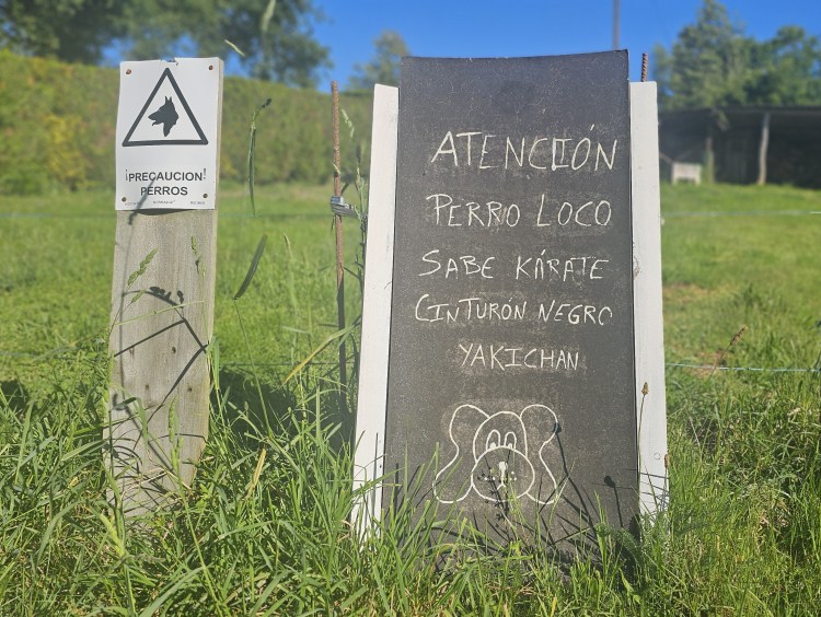 We stopped at a café and had our typical fresh squeezed orange juice. Elizabeth and I could not resist the home made brownies that were amazing. What a great breakfast!! Cooper grabbed a brownie to go. We got a kick out of the sign warning us of their dog – see photos. It is in Spanish, but translates to: Crazy dog, knows karate, black belt, Jackie Chan. The Spanish don’t have our “J” sound, sound it is written YAKICHAN. We never saw a dog, but figured he was probably lazily sleeping around the corner.