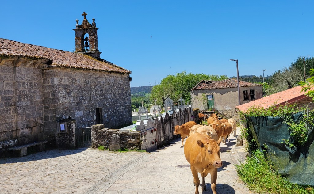 Today was a great day for walking. Gentle ups and downs, gravel beside the road, some road walking and our favorite – a dirt path through the Galician countryside. We are now passing through some Eucalyptus forests as well.