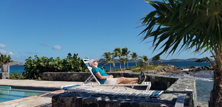 RE: our cell phones: Our plan with Verizon doesn’t cover the Virgin Islands so my phone is on airplane mode for the 4 days we are here. Gary will pay the $10 a day “international” daily fee so he can be accessible to his employees should they need him and for emergencies. Where ever there is wifi coverage (our condo, restaurants, bars, etc.), I can use my phone and our laptops.