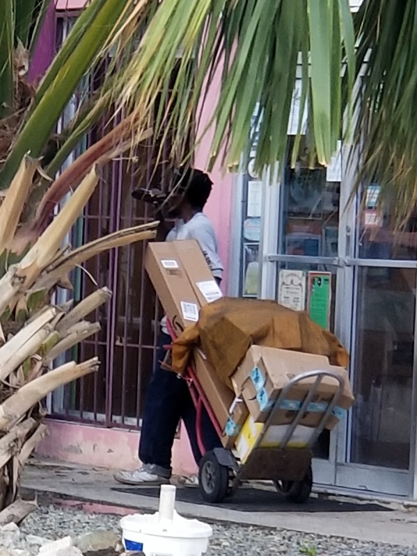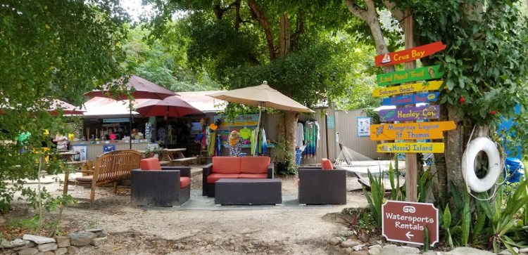Since eggs, Mango-Ritas, Heinekens and wine is all we had in the fridge (although we are grateful for the stash!) we made a shopping list and drove to the recommended Moe’s Fresh Market one mile away at 7am when it opened. Driving allowed us to scout out the small town of Red Hook on our initial shopping trip. We will walk to town each time from now on. Holy cow, it’s quite expensive here. Since almost all food needs to be brought onto the island, fresh strawberries are $8, my usual $4 jam is $7, a gallon of milk $6, etc. We bought a steak to grill (on the Forman Grill provided on the back patio of the condo) and will enjoy broccolini and a bagged salad kit so we didn’t need to buy dressing. Got breakfast foods (avocado and frozen waffles because we were given Vermont maple syrup as a gift earlier in the trip!) We plan to figure out our future food schedule each day as we go. Eating at local café’s is a favorite of ours where ever we go.