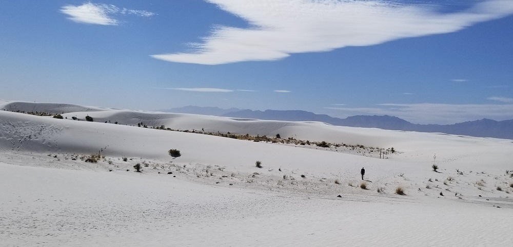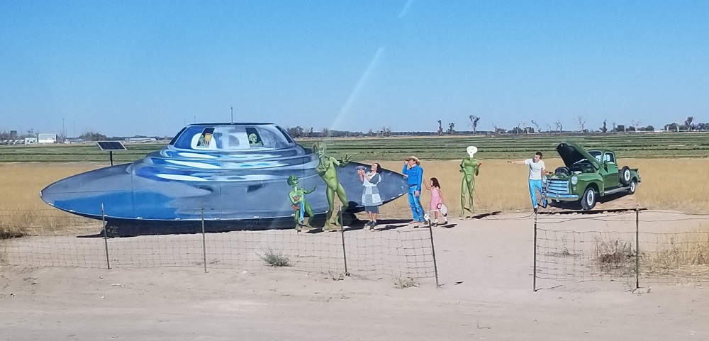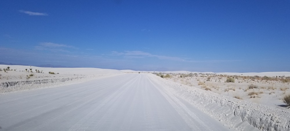 We left the quaint and privately-owned town of Whites City, NM, after touring Carlsbad Caverns NP, heading to Roswell, NM for a night on our way to White Sands National Park in Alamogordo, NM. The newest National Park, #62!