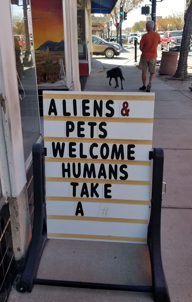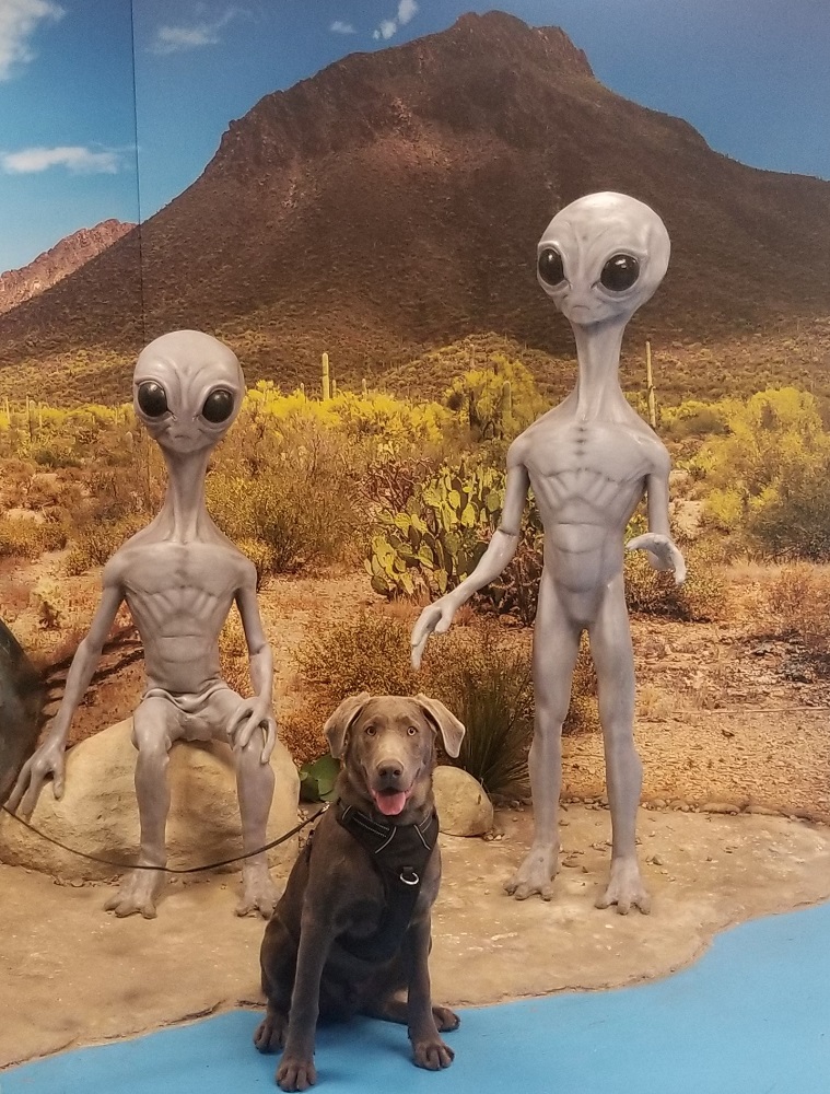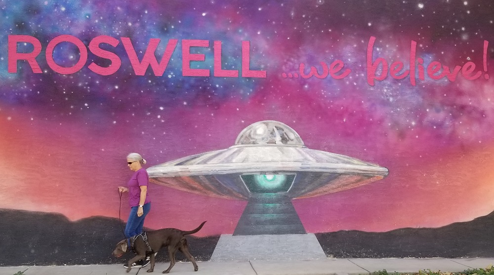 I wanted to see Roswell, NM, for the obvious reason of experiencing the well know alien town and, I called ahead to confirm what I had read about… dogs can tour the International UFO Museum with us! I am not quite sure Rangeley “enjoyed” the museum but we had to go …we were in Roswell, in a museum, with a dog! Roswell is home to NM Military Institute which started in 1891 and is still active. This touristy, artsy town founded in the late 1800’s was very alien to us…ok bad one… but it was interesting, educational and fun. See our slide show of our time in Roswell below : )