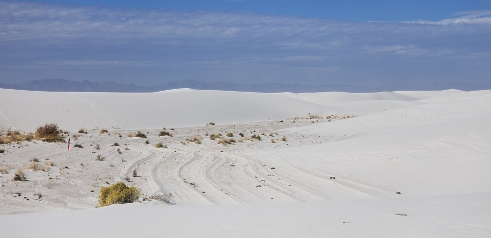 We wanted to visit Lake Lucero on the southwest side of White Sands NP but you have to go with a tour guide. Unfortunately, due to COVID, the tours are not happening right now. The entire western half of the park is a “Cooperative Use Area” with a military missile testing site that is not allowing the public on that side of the park right now. We didn’t see any missile parts or experience a shut down of the park for testing launches but those are real, interesting and scary facts about this park.
