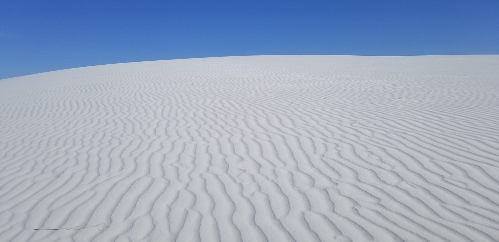 Our first stop was Dune Life Nature Trail, a 1-mile loop with several informational plaques telling about the Kit Foxes, Bleached Earless Lizard, Apache Pocket Mouse, Soaptree Yucca plant and the Skunkbush Sumac bushes in this area. The dunes move with the winds and leave low spot where plants then grow after heavy rains. The winds also create beautiful rippling patterns in the sand.