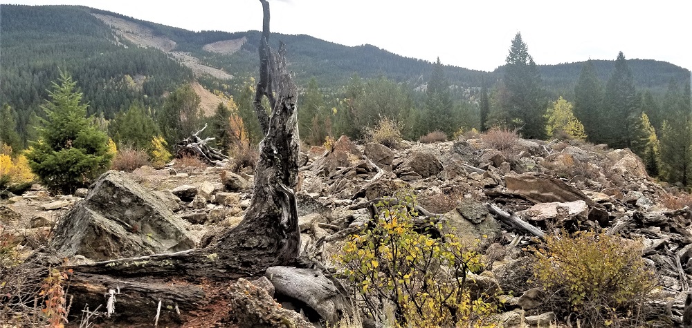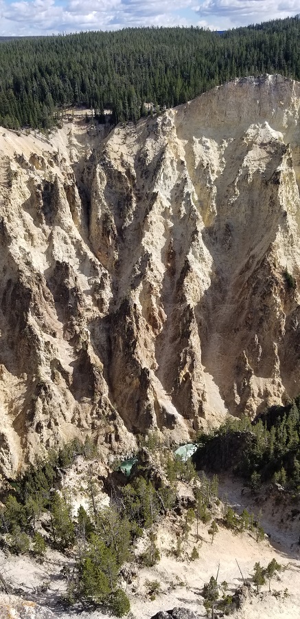 I enjoyed the Mud Volcano Area where I (Gary stayed with the pup as Rangeley cannot go on trails) walked up and over a hill watching muddy pits of all sizes bubbling, flowing, pouring and steaming out of the ground. See pictures.