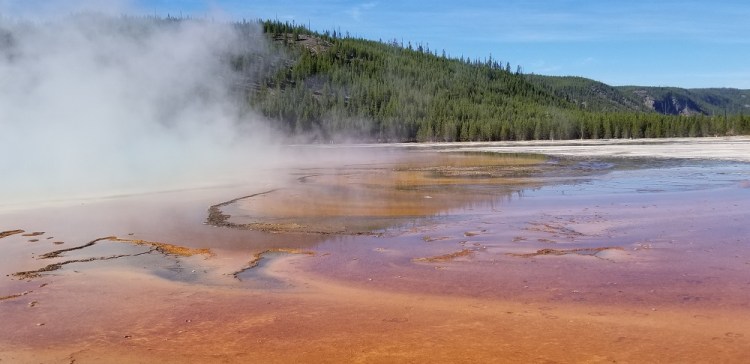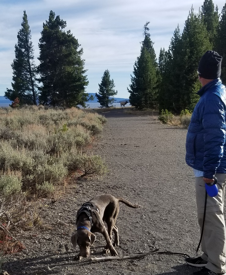 We hope you enjoy all the photos Gary has put into slide shows below: Old Faithful Geyser, Prismatic Springs, animals along the way, our cookout dinner and Rangeley, of course, playing in the lake and admiring the elk! Be sure to read the descriptions beneath each of the pics for more detailed info of our day!
